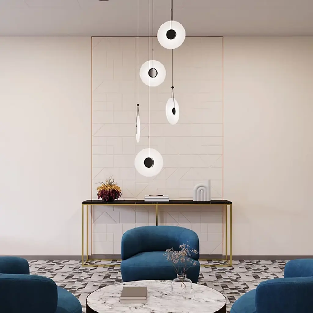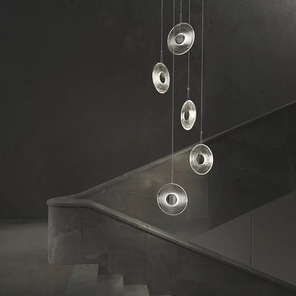 A dazzling cascade of sparkling light. The Meclisse Multi-Light LED Pendant by SONNEMAN was designed to be a perpetually moving artistic display, as much as a functional light fixture. It features suspended discs of Ribbed Glass surrounding LED-illuminated cores. The discs fully enclose the cores and capture all of the light that’s produced, pulling it across their textural surface and outward in a warm and sparkling wash of ambient. Each disc is suspended on a thin cord, allowing it to move freely with the slightest breeze. Use this light to create a playfully dynamic centerpiece in a dining area or entryway.