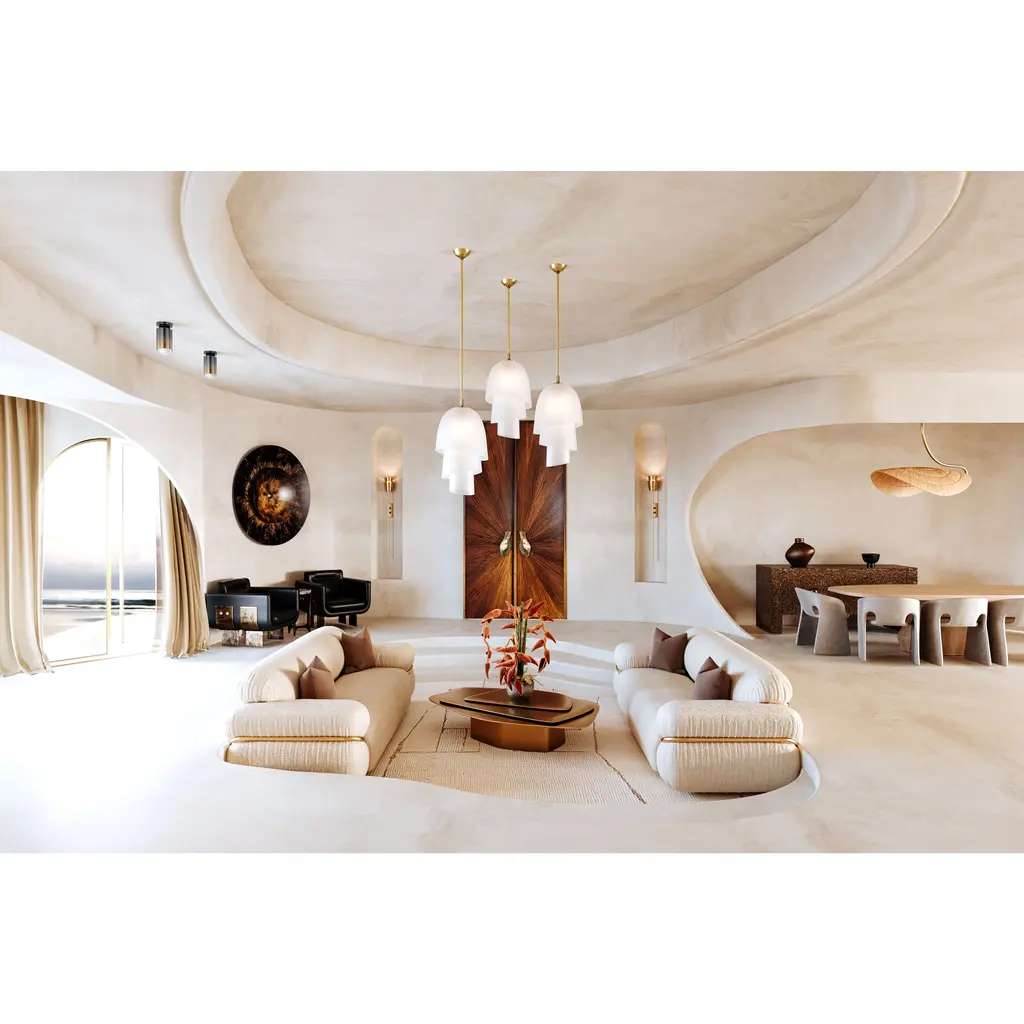 Handwoven from natural rattan, the graceful canopy of Medea reimagines a large leaf in a tropical oasis. A swooping arm finished in gleaming Vintage Gold Leaf perfectly complements the curves of the shade, creating a dialogue between nature and luxury. Available as a 4 or 6-light island, Medea creates a refreshing statement above a dining table or in a living room.Due to the one-of-a-kind nature of the medium, exact colors and patterns may vary slightly from the image shown.