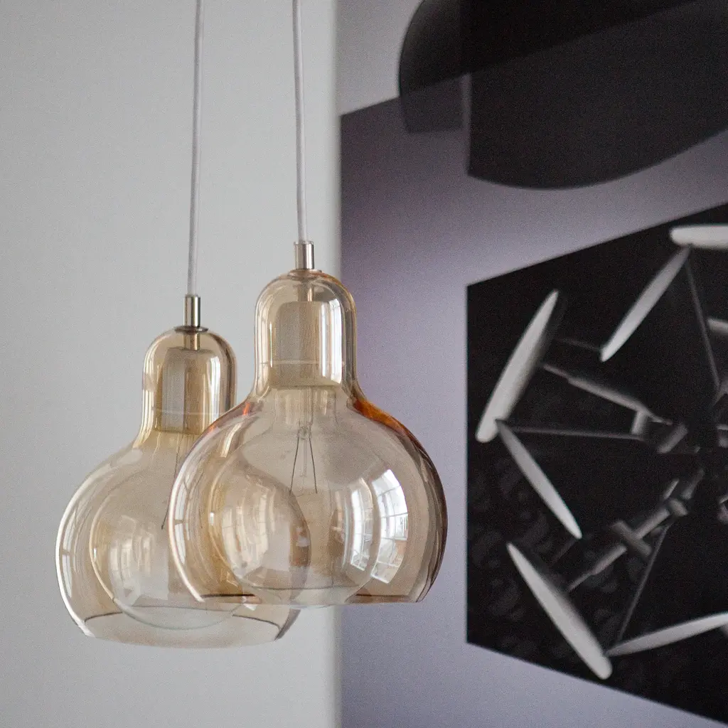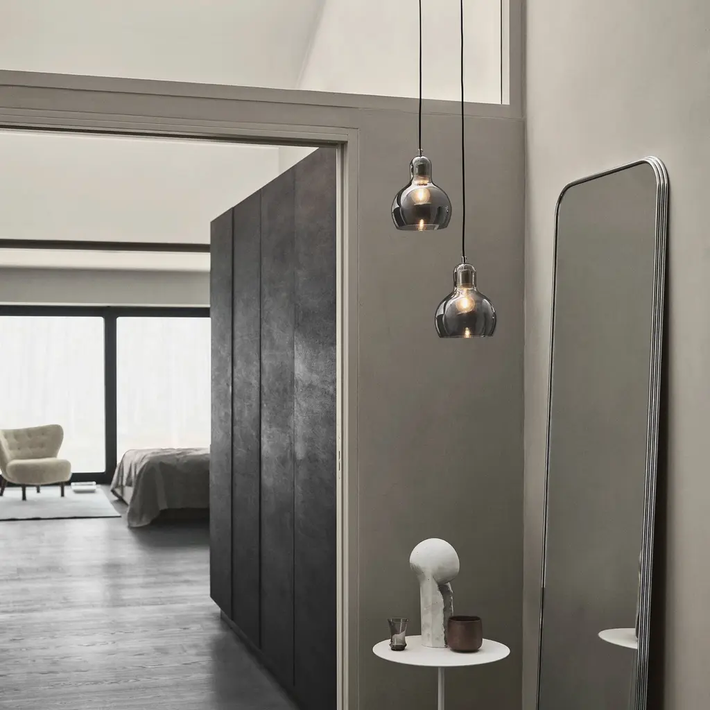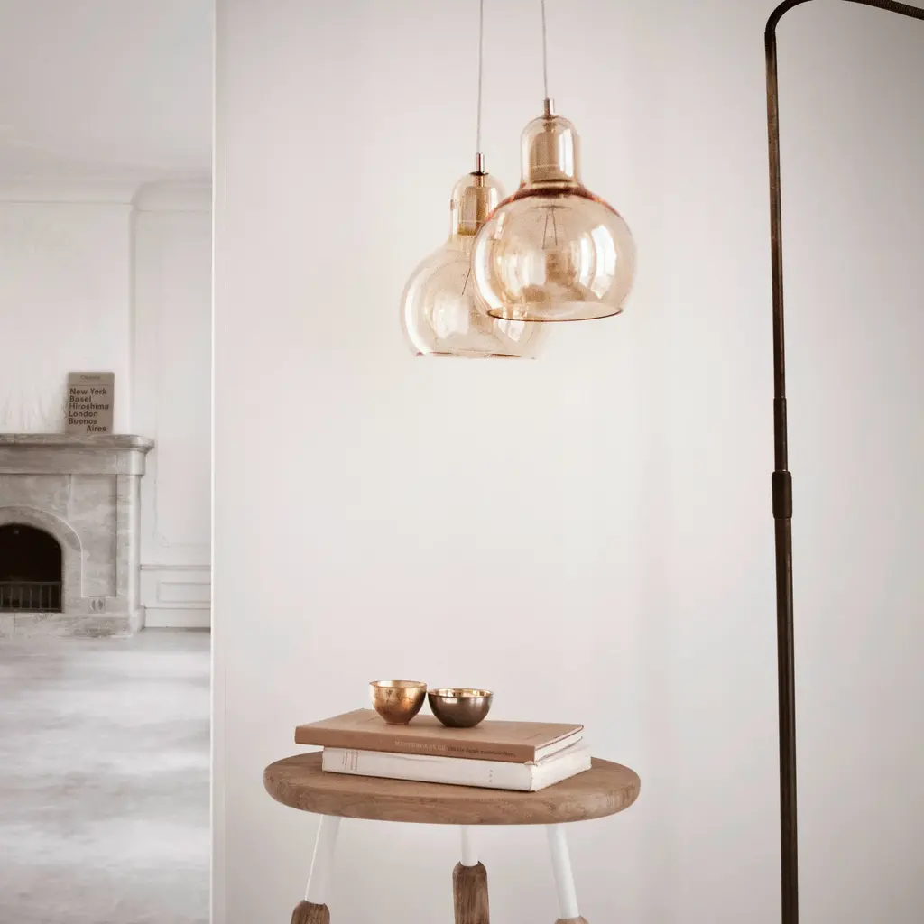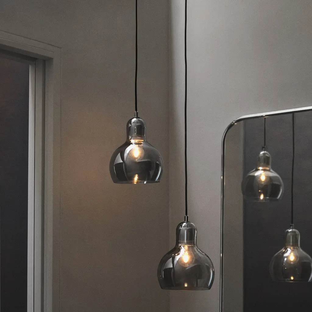Minimalism was never so crystal clear. Mouth-blown glass with a polished edge form the clear lampshade of this classic re-imagined by lighting designer Sofie Refer. Whether on her own or under her studio Refer + Staer, the Danish lighting designer continually plays with the concept of "clear." There's even 7.5 feet of transparent cord that can be trimmed to suit. The high grade of the glass is paired with a fine porcelain socket and stainless-steel accents. A white, low-profile canopy blends into most ceilings. The Mega-Bulb is a bulbous version of the original that uses a G40 clear incandescent bulb (not included). When the Bulb came out, it quickly took several accolades including the coveted Good Design Award in 2001—two years before Sofie graduated from the Danish Design School. The gal knows her lighting. A favorite of A+R, we have regularly showcased these stunning lamps prominently above our counter in the store.