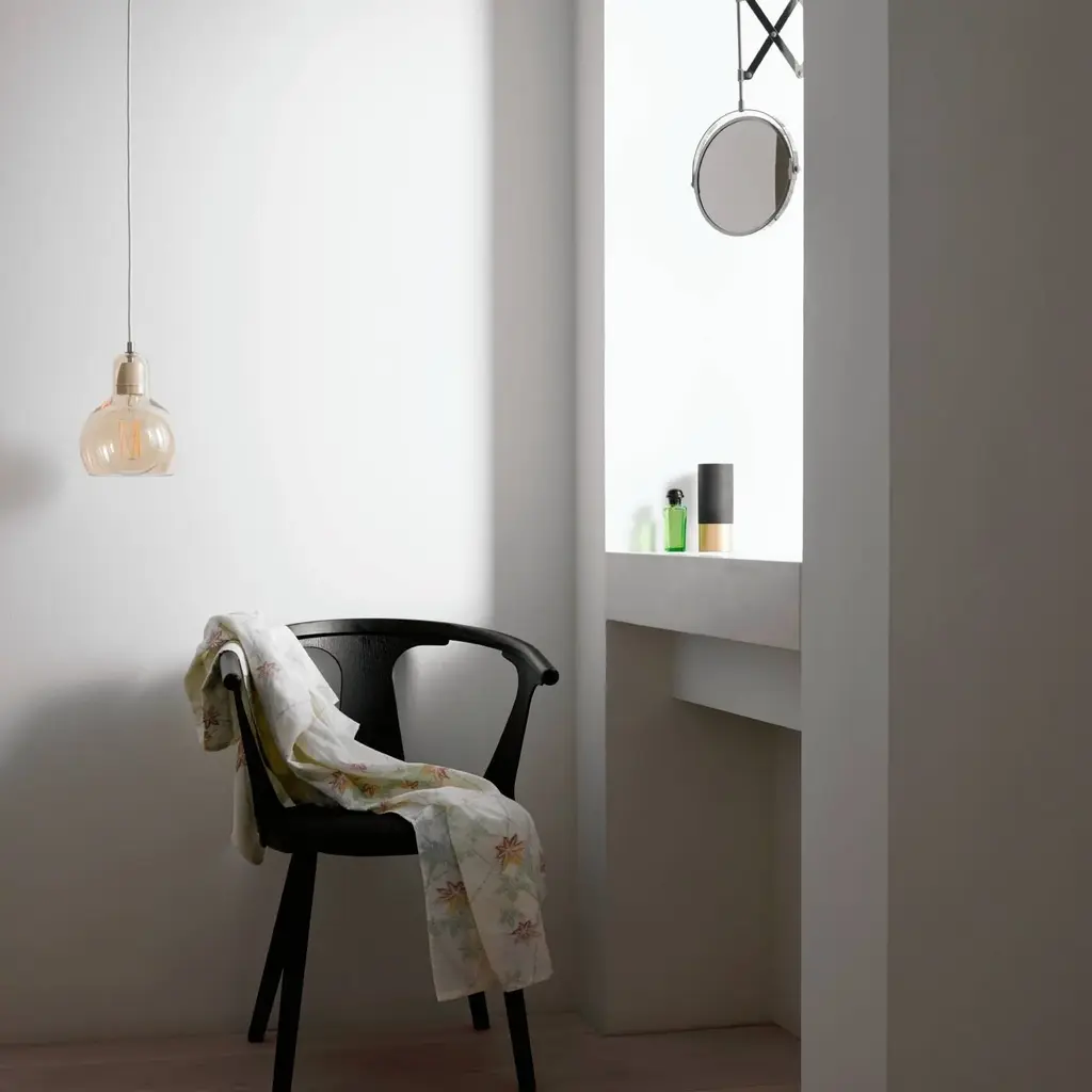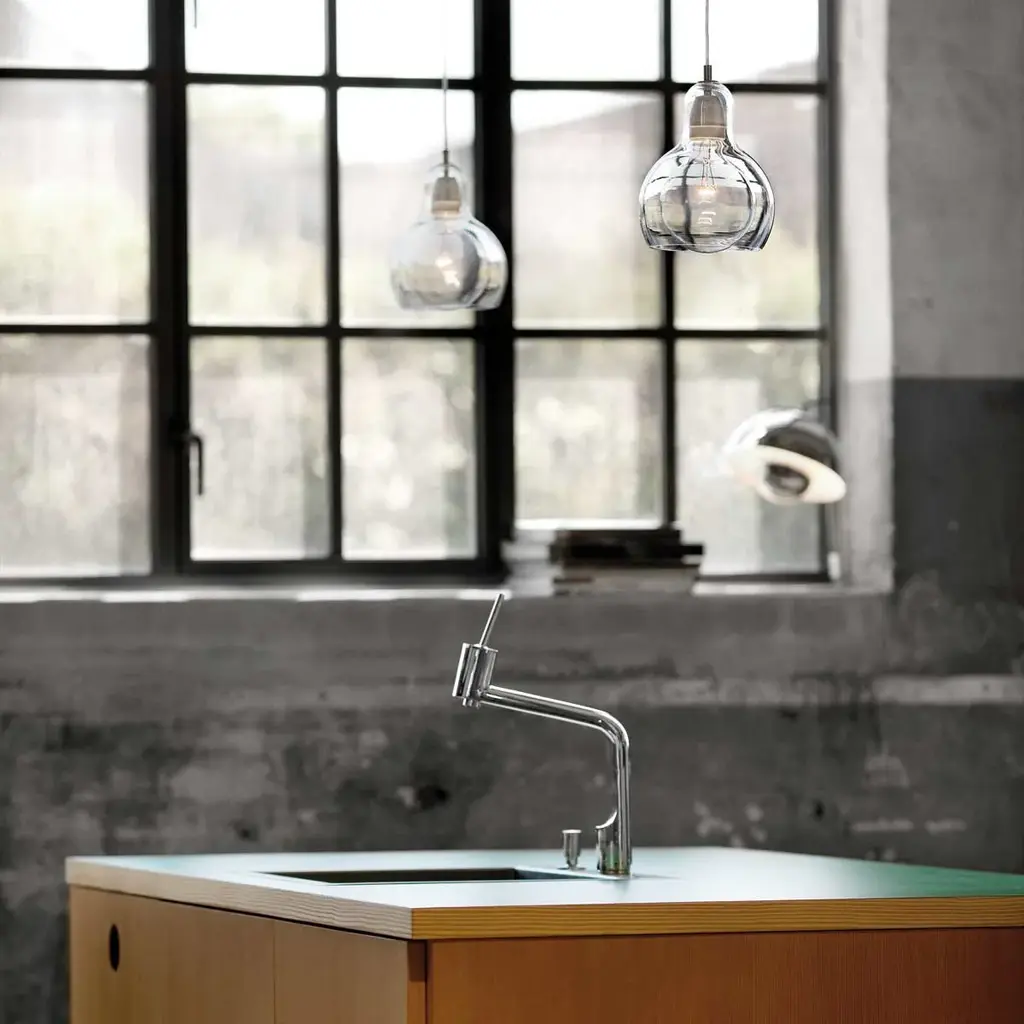 Minimalism was never so crystal clear. Mouth-blown glass with a polished edge form the clear lampshade of this classic re-imagined by lighting designer Sofie Refer. Whether on her own or under her studio Refer + Staer, the Danish lighting designer continually plays with the concept of "clear." There's even 7.5 feet of transparent cord that can be trimmed to suit. The high grade of the glass is paired with a fine porcelain socket and stainless-steel accents. A white, low-profile canopy blends into most ceilings. The Mega-Bulb is a bulbous version of the original that uses a G40 clear incandescent bulb (not included). When the Bulb came out, it quickly took several accolades including the coveted Good Design Award in 2001—two years before Sofie graduated from the Danish Design School. The gal knows her lighting. A favorite of A+R, we have regularly showcased these stunning lamps prominently above our counter in the store.
