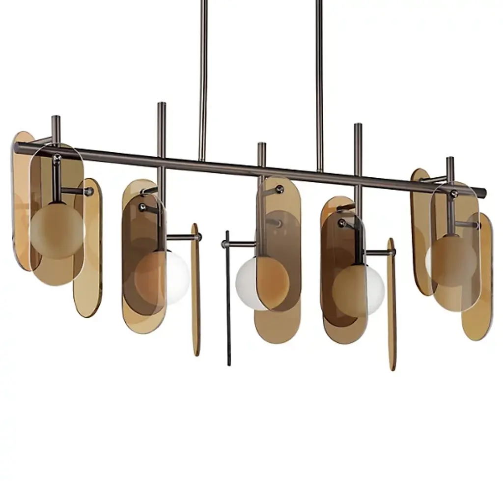 Crafted as a tribute to the enduring charm of stone, the Megalith LED Linear Suspension from Studio M epitomizes timeless elegance. Hanging from slender stems extending from an oval canopy, it supports a series of oval-shaped stone panels around inner lamping, each gracefully illuminated by an even ambiance cast through white-cased glass globes, producing a mesmerizing glow. Various stone panels, each with individual veining and exuding intricacy and sophistication, offer visual appeal and customizable versatility to elevate any space with its refined ambiance.
