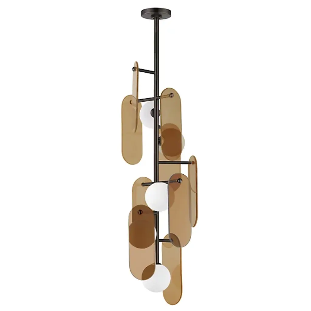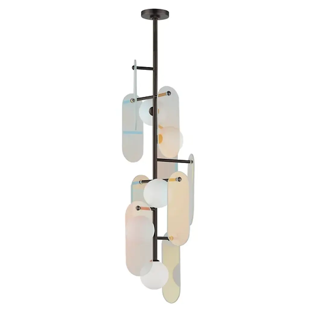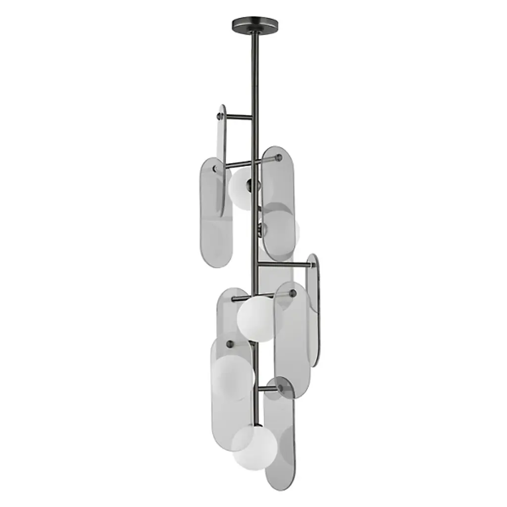 Crafted as a tribute to the enduring charm of stone, the Megalith LED Linear Suspension from Studio M epitomizes timeless elegance. Hanging from slender stems extending from an oval canopy, it supports a series of oval-shaped stone panels around inner lamping, each gracefully illuminated by an even ambiance cast through white-cased glass globes, producing a mesmerizing glow. Various stone panels, each with individual veining and exuding intricacy and sophistication, offer visual appeal and customizable versatility to elevate any space with its refined ambiance.