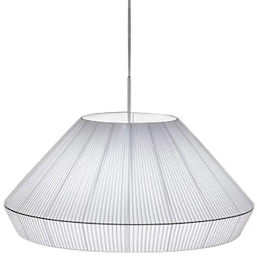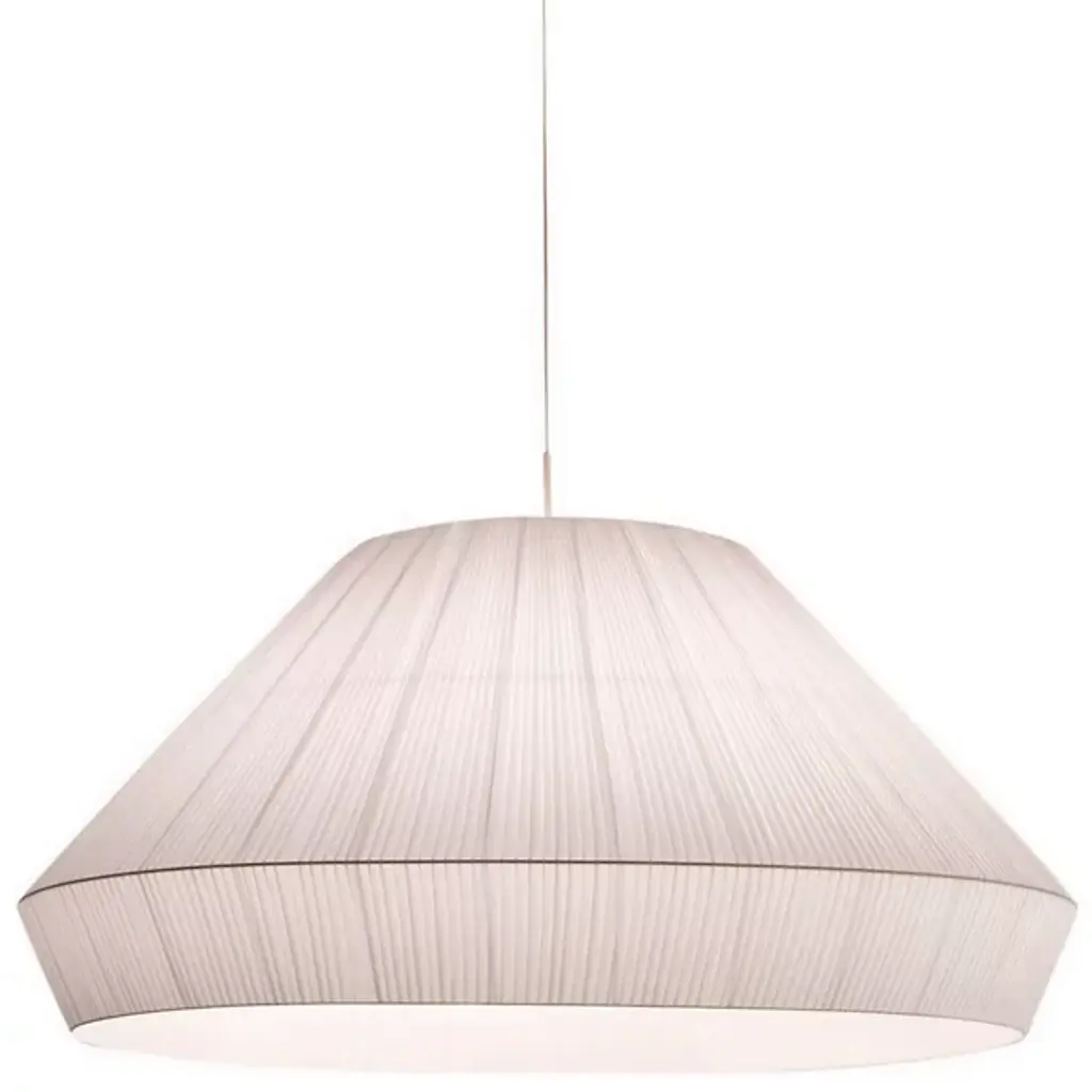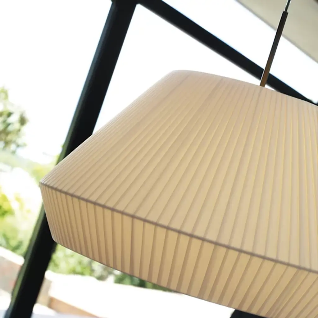 Add customizable chic with the Mei Pendant by Bover. A 2004 design by Joana Bover, it’s made in Spain and suspends a single central lamp below a disc ceiling canopy using a slim wire, before surrounding it with a frame and fabric shade with hand-wrapped pleats. Ideal for spaces that need wide-ranging and warmer light, the Mei offers a contemporary simplicity that evokes light playing across the sea and skies.
