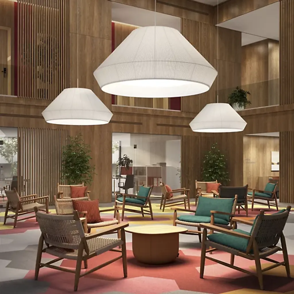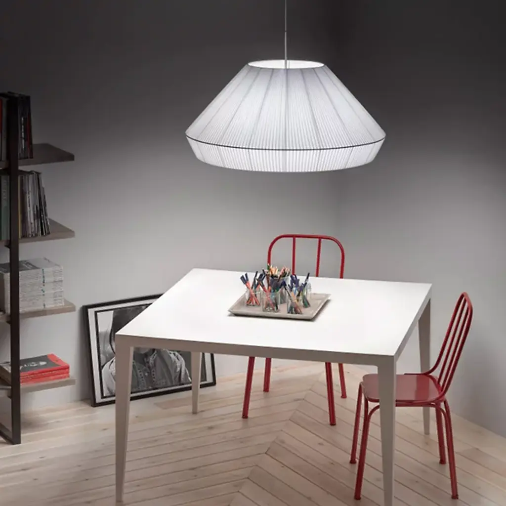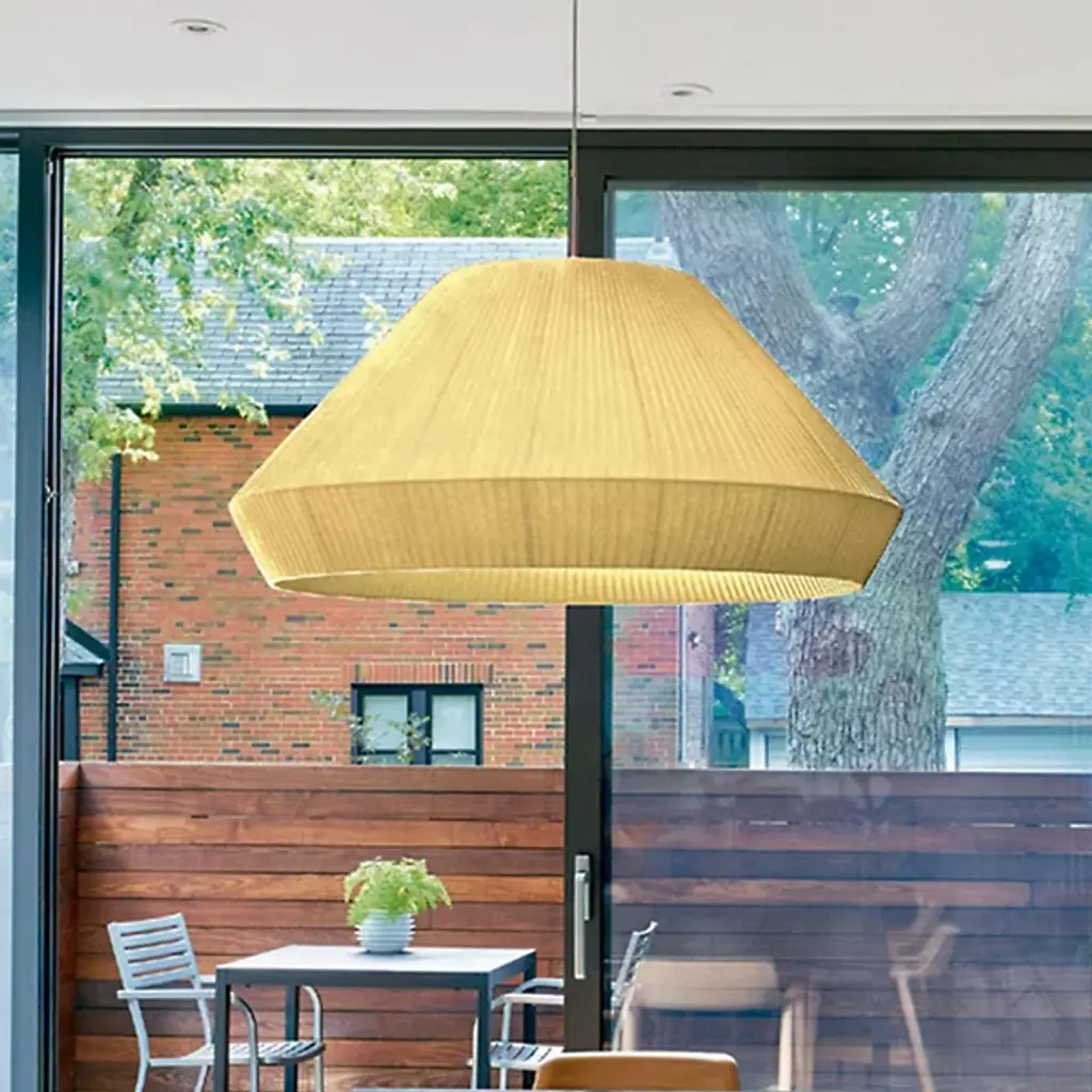 Add customizable chic with the Mei Pendant by Bover. A 2004 design by Joana Bover, it’s made in Spain and suspends a single central lamp below a disc ceiling canopy using a slim wire, before surrounding it with a frame and fabric shade with hand-wrapped pleats. Ideal for spaces that need wide-ranging and warmer light, the Mei offers a contemporary simplicity that evokes light playing across the sea and skies.