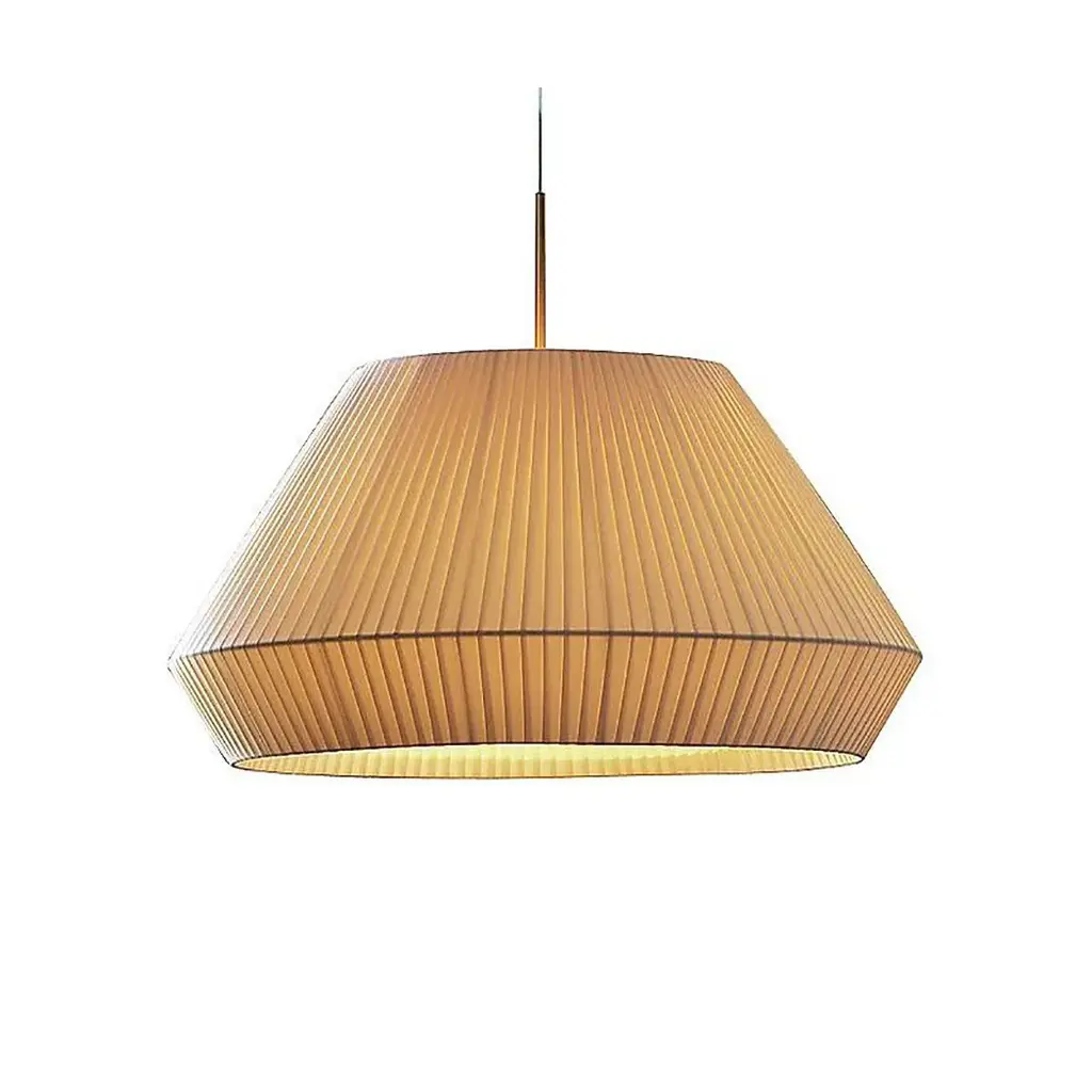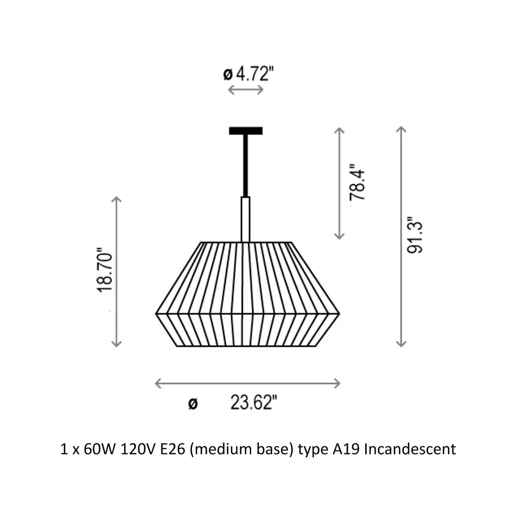 Pendant lamp providing diffused light through a translucent shade of hand wrapped polyester blend ribbon. Height can be easily adjusted via tensor wires. The electrical connection is transparent, and the included diffuser is a frosted injection-molded polycarbonate lens. Available in larger formats. Features: