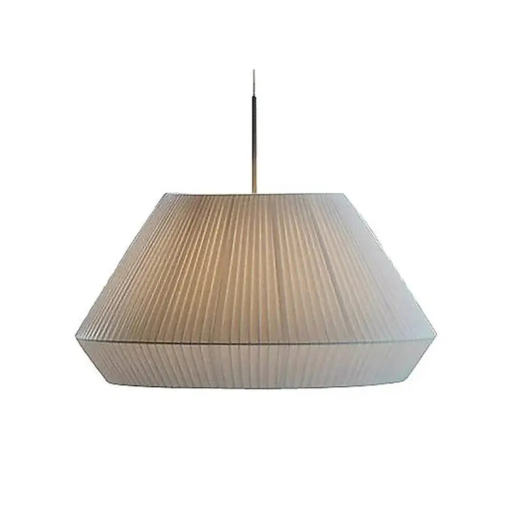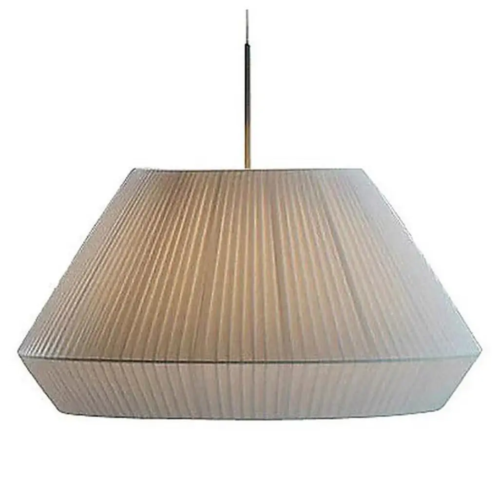 Pendant lamp providing diffused light through a translucent shade of hand wrapped polyester blend ribbon. Height can be easily adjusted via tensor wires. The electrical connection is transparent, and the included diffuser is a frosted injection-molded polycarbonate lens. Available in larger formats. Features: