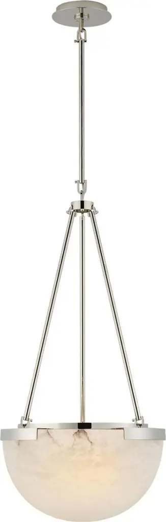 The Melange Small Pendant series by Kelly Wearstler artfully combines natural alabaster with metal in rounded forms and unique configurations, creating a harmonious blend of organic and luxurious elements for a modern chic interior. The carved alabaster shades emit a soft, ambient glow on walls and surfaces, while the streamlined shapes complement angular or minimalist surroundings. Each alabaster piece features unique variations in veining and tone, offering a distinct character that is both collectible and appealing. The detailing adds a touch of contrast and shine, enhancing the overall aesthetic. Whether you opt for flush mounts, pendants, sconces, or table lamps, the Melange lighting collection introduces a multi-layered look to living spaces, bedrooms, hallways, and dining areas.