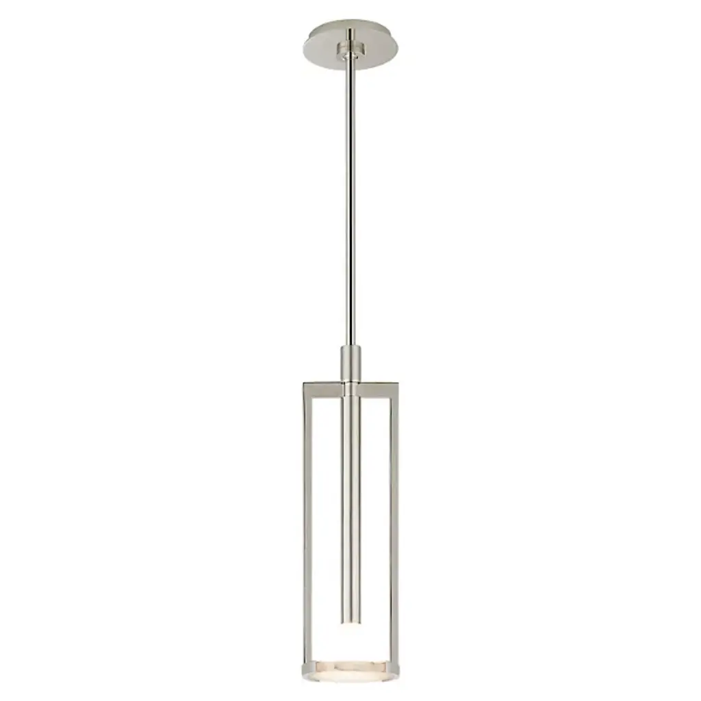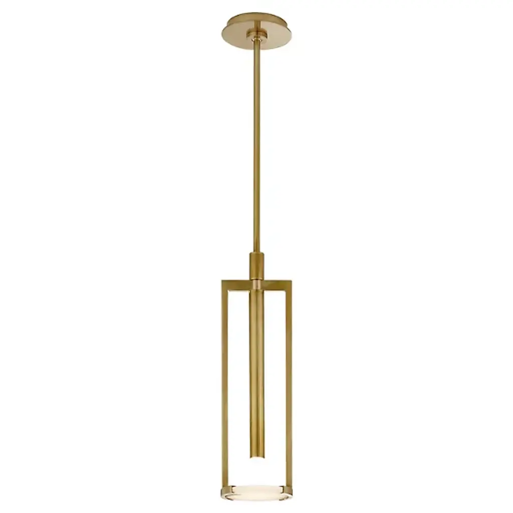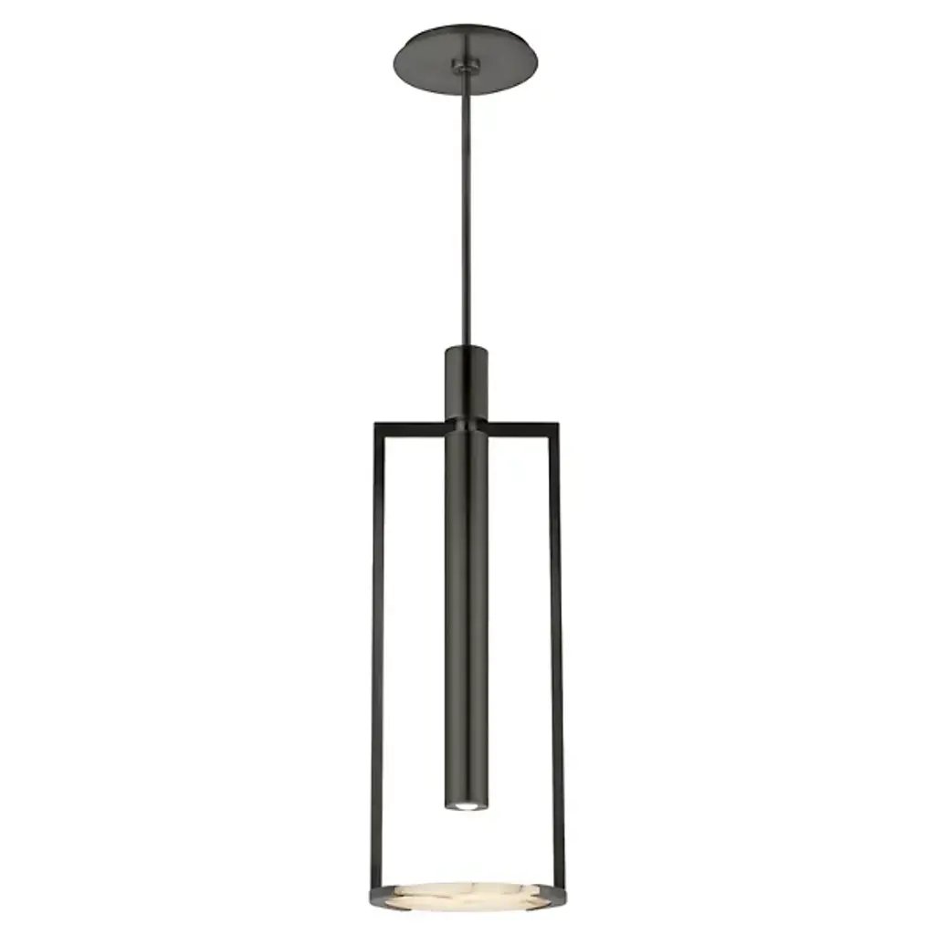Designed by Kelly Wearstler and presented by Visual Comfort Signature, formerly known as Visual Comfort,, the Melange Floating Disc LED Pendant is a transitionally styled piece with mid-century modern influences throughout. Integrated LED provides low energy consumption and a longer lifespan than the traditional lighting unit. Including two 16in. stems and composed of alabaster and brass, this sloped ceiling adaptable furnishing is suitable for practically any interior, including outdoor locales protected from the elements.