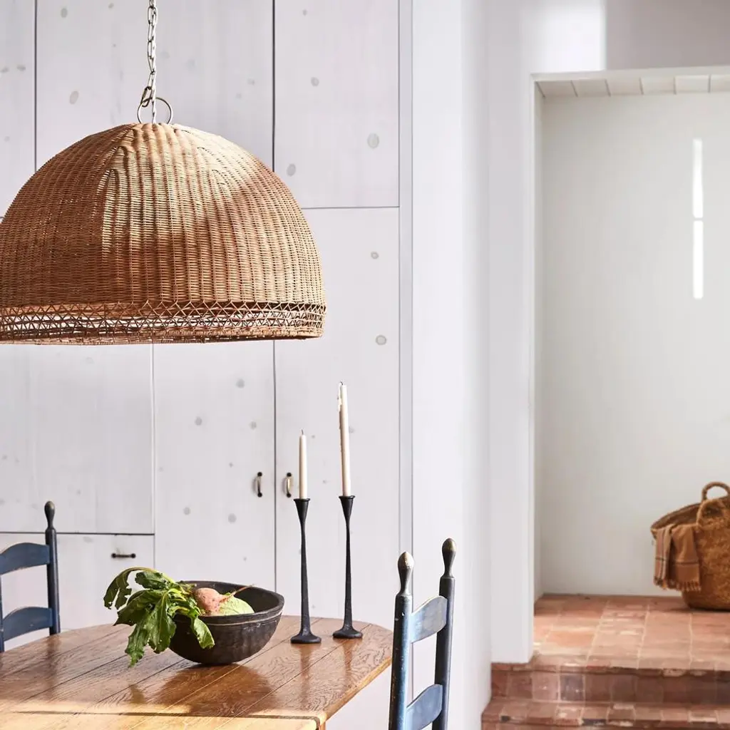 Melanie Mid Century Modern Natural Rattan Pendant - Small