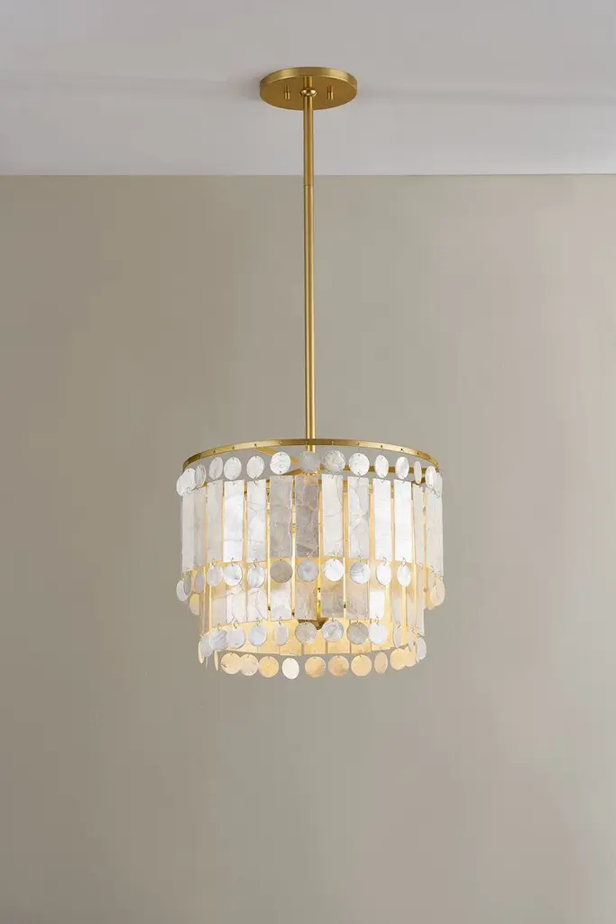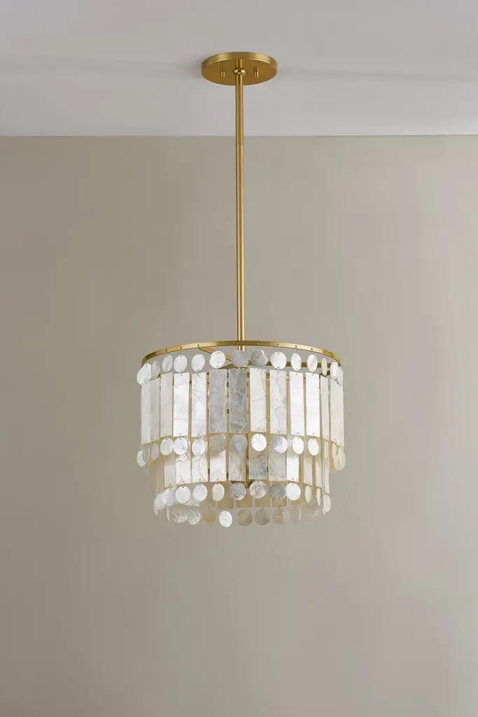 Melisa 3-light Pendant, Capiz Shell/aged Brass