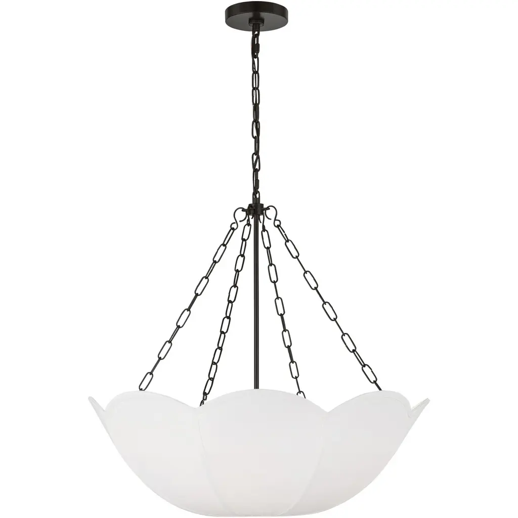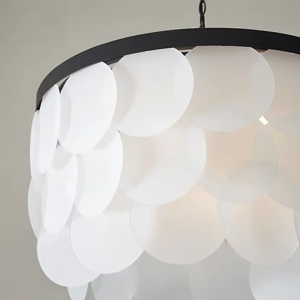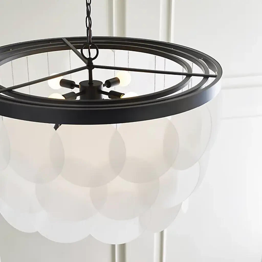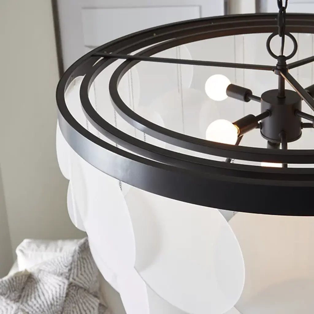 Bring a clean and calming quality to the room with the Mellita Pendant by Visual Comfort Studio, formerly known as Sea Gull Lighting, This charming pendant begins at a circular canopy and adjustable chain. A steel ring supports a series of bulbs that cast a radiant glow through slender white satin etched glass discs. Each disc hangs freely in place, lending a dynamic charm that evokes movement and whimsy. Elegant and adaptable, this piece brings balance to a wide range of interior décor themes.
