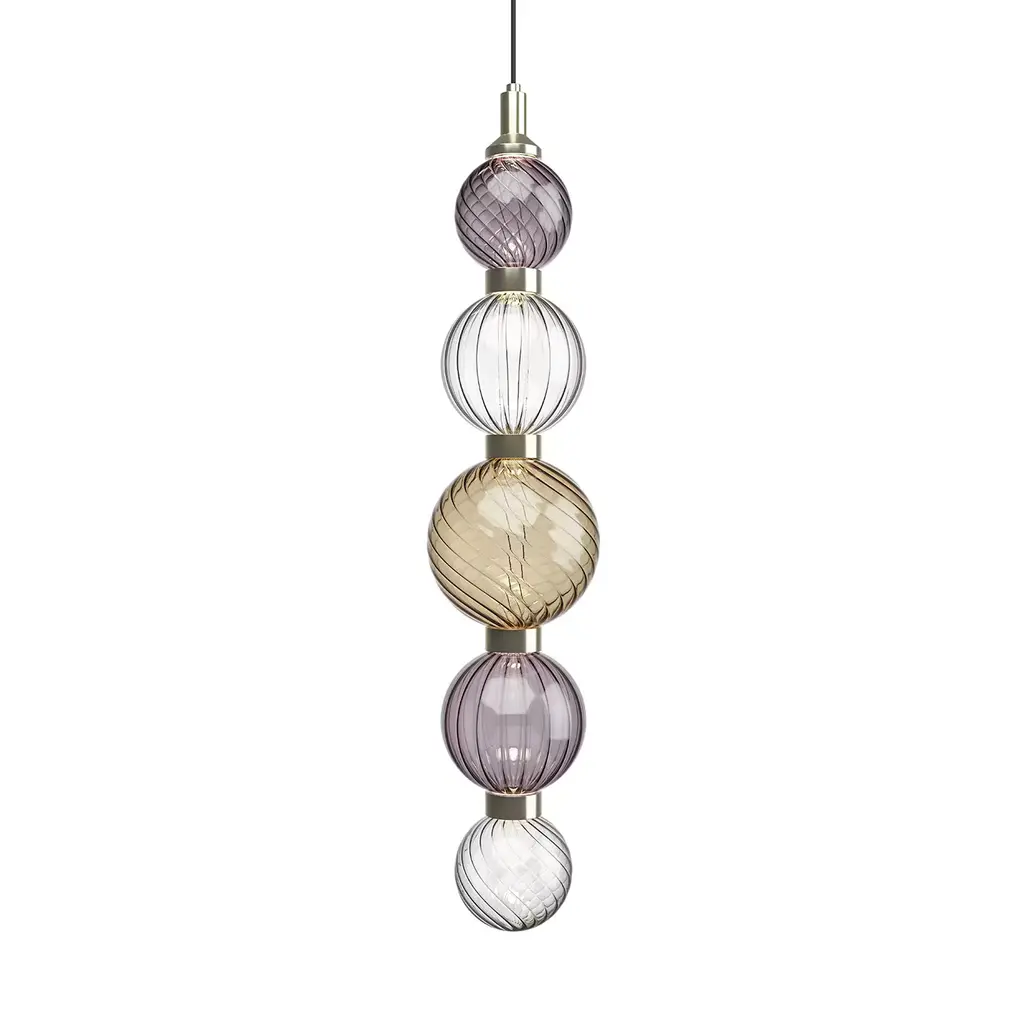 Meltdown - Pendant lamp with diffused light, diffuser in coloured glass mouth-blown on a mould.Wall fixing - metal, matt varnished in black colour:- for single version Ø 11x2 cm- for cluster with 4 diffusers Ø 33,8x2 cm- for cluster with 8 diffusers Ø 45x2 cmcable and lamp-holder in black colourDiffuser: coloured transparent glass Ø 26,4 x 29,5 cm with diffuser lock in matt black painted aluminiumDiffuser finish - six different colours available: VT1amber, VT2 tobacco, VT6 pinK, VT5 amethyst, VT4 light blue, VT3 doveNotesBulbs not included - Halogen bulbs suggested max 60W 230V for lamp holder E27Available cable length for hanging lamps: 2,5 mtLinear hanging version can be clustered to create different compositionsThe glass of this lamp is a unique piece, it is the result of the antique art of Italian Glass Makers. Any air bubbles or colour differences, common in handmade glass products, are to be considered qualitiesIn this product, the illuminating function has become a pretext for the creation of an object with a markedly bold personality; the celebrated Meltdown lamp by Johan Lindstèn is available in three options: a floor, table and suspended version.The base of the floor version has either five or eight diffusers, the table lamp has one. For the hanging version there are four different formats (single, a cluster with 4 diffusers, a cluster with 8 diffusers and linear with 3 diffusers),The diffusers of all of these lamps have a distinctive spherical form made from coloured pâte de verre glass that has been mouth-blown into a mould. The palette includes the following shades: amber, tobacco, rose, amethyst, light blue and dove grey: the purchaser can order the spheres in a single colour or in a pre-set mix of hues.The glass used for this lamp is a one-of-a-kind expression of the ancient art of masterful glassmakers; any small air bubbles or variations in the colour intensity are due to the artisanal craftsmanship and represent a valuable addition.