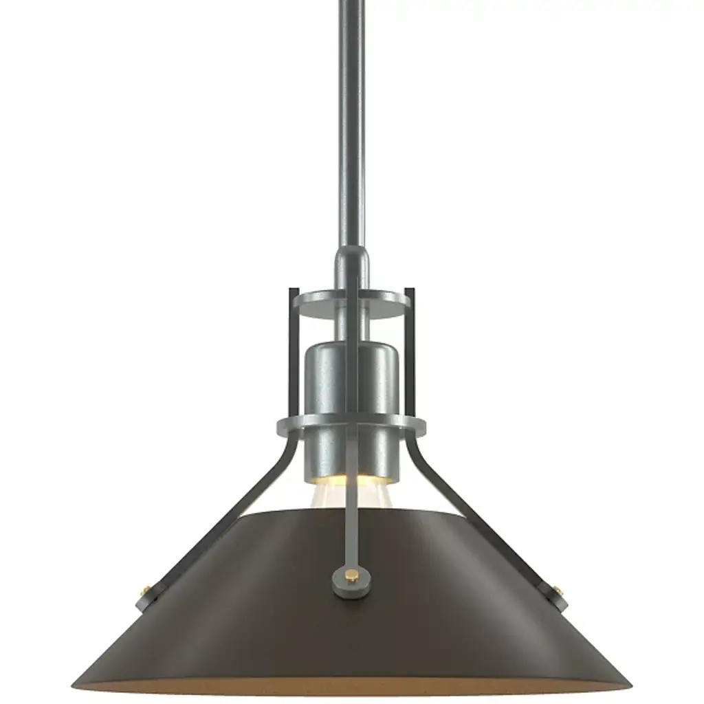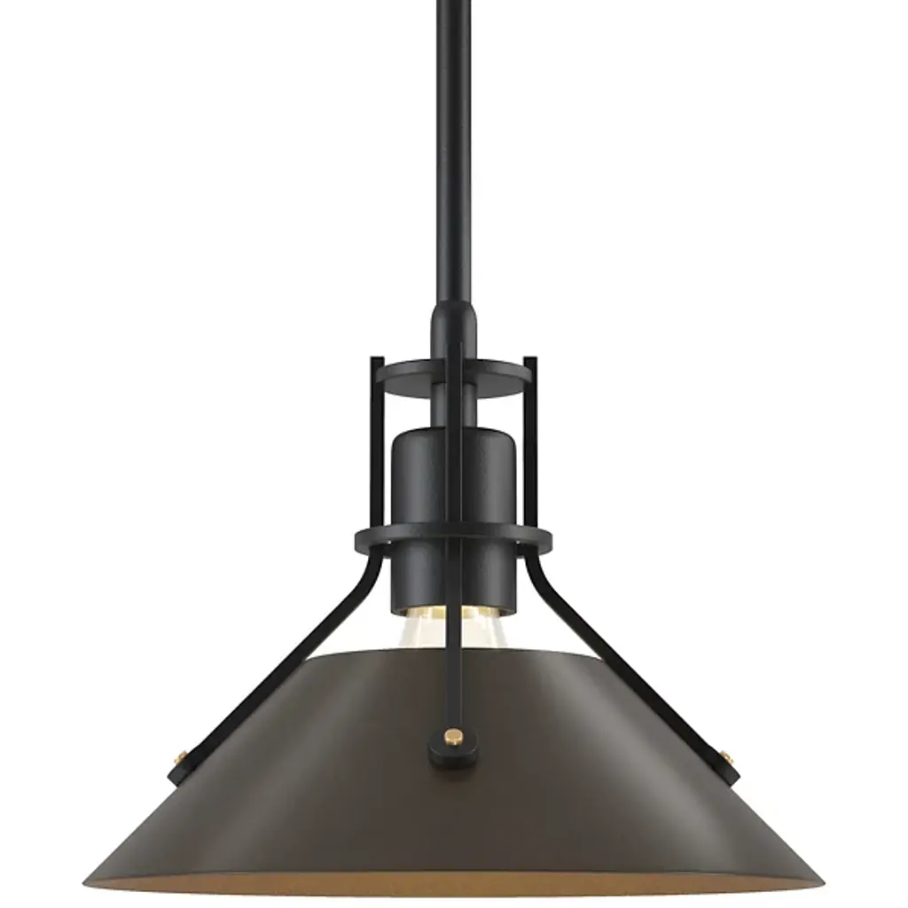 Give your living space an industrial appearance with the Memphis Pendant by Alder & Ore. Steel has been finely worked into the shape of a dome. Within this dome sits a lovely shade of glass containing an incandescent bulb that produces brilliant light that fills your home. The Memphis Pendant maintains its midair suspension through attachment to a canopy at your ceiling. A slender downrod allows the light to effortlessly hang above your tables and kitchen islands.