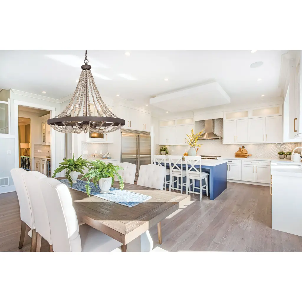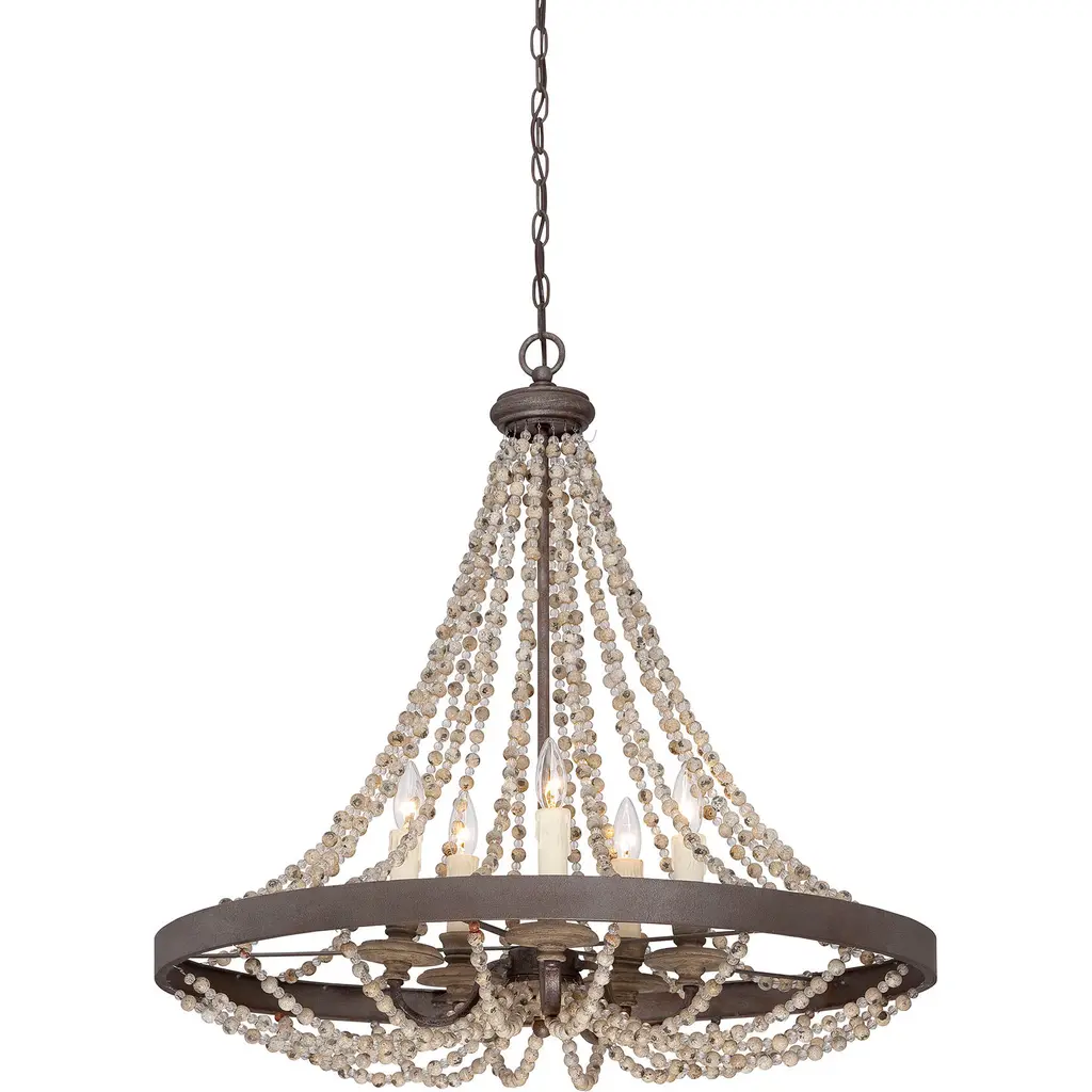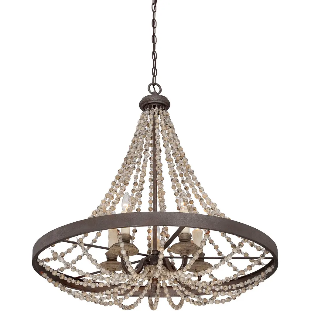 Featuring rustic style and elegant curves, this Savoy House Menard 5-light pendant is an excellent way to bring nature-inspired flair into your home. Textured details such as beaded strands, soft white beeswax candle covers and a Fossil Stone finish add intrigue. Pendants are extremely versatile and can fit in many different spaces, such as kitchens, family rooms, great rooms, foyers, entryways, offices, bedrooms and bathrooms. You can hang this pendant from a sloped ceiling as well. Bulbs not included. The Fossil Stone finish pairs well with bronze or black hardware, but can also mix with hardware in other finishes. Menard is ideal for rooms with a transitional, relaxed or eclectic style. When you choose a Savoy House lighting fixture, you can be certain you’ve selected a piece that will withstand the test of time.