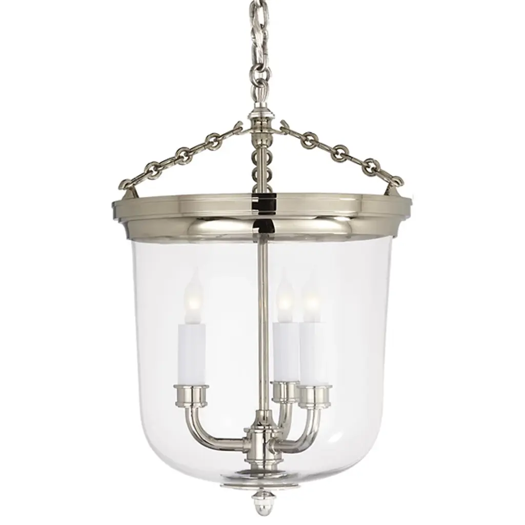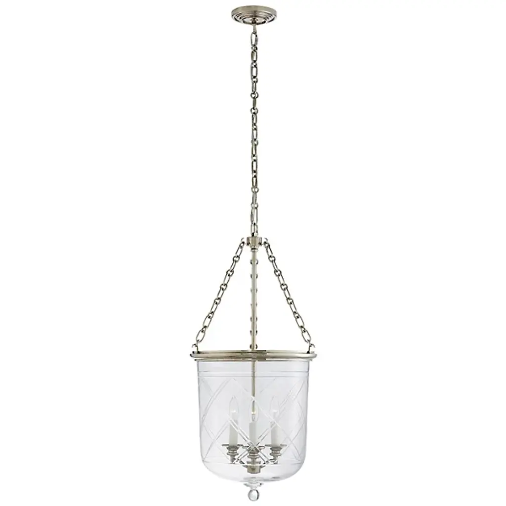 The Merchant Pendant by Visual Comfort Signature, formerly known as Visual Comfort, shows off craftsmanship and design with top to bottom attention to detail. This starts with a precise ceiling canopy and rugged chain set which leads to a refined glass bowl with metal trim and a small finial for extra support. Within this bowl resides a classic 3-light candelabra which delivers light and ambience to your chosen space. Dimmable with an incandescent dimmer (not included).