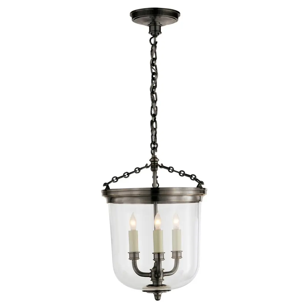 The Merchant Pendant by Visual Comfort Signature, formerly known as Visual Comfort, shows off craftsmanship and design with top to bottom attention to detail. This starts with a precise ceiling canopy and rugged chain set which leads to a refined glass bowl with metal trim and a small finial for extra support. Within this bowl resides a classic 3-light candelabra which delivers light and ambience to your chosen space. Dimmable with an incandescent dimmer (not included).