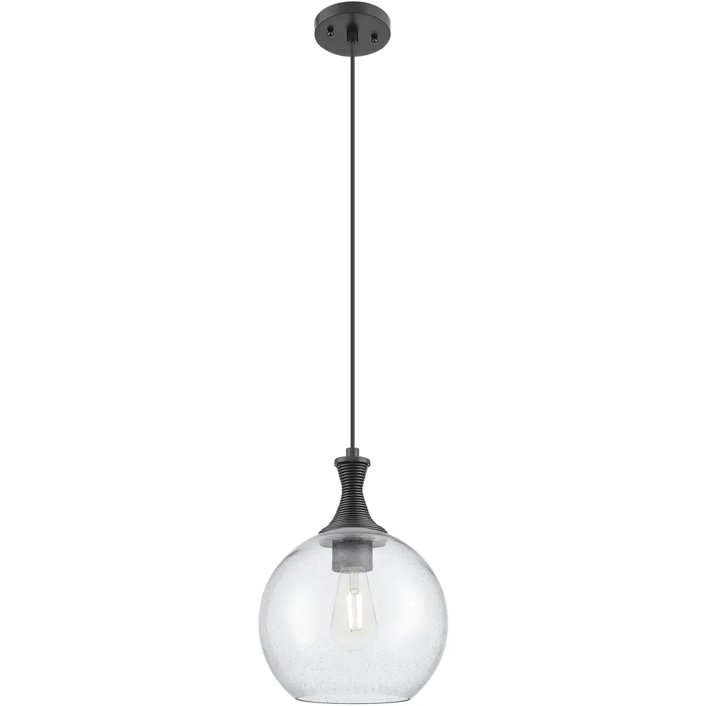 The Meridian Globe Pendant by Quorum International encompasses worldly beauty while maintaining a versatility that makes it ideal in any interior design theme. This simplistic fixture is comprised of a clear glass globe that is partially surrounded by a fitted metal framework. It hangs from a single downrod that ends in a visible bulb socket and incandescent lamp within the transparent shade, evoking the look of an antique globe suspended in air.