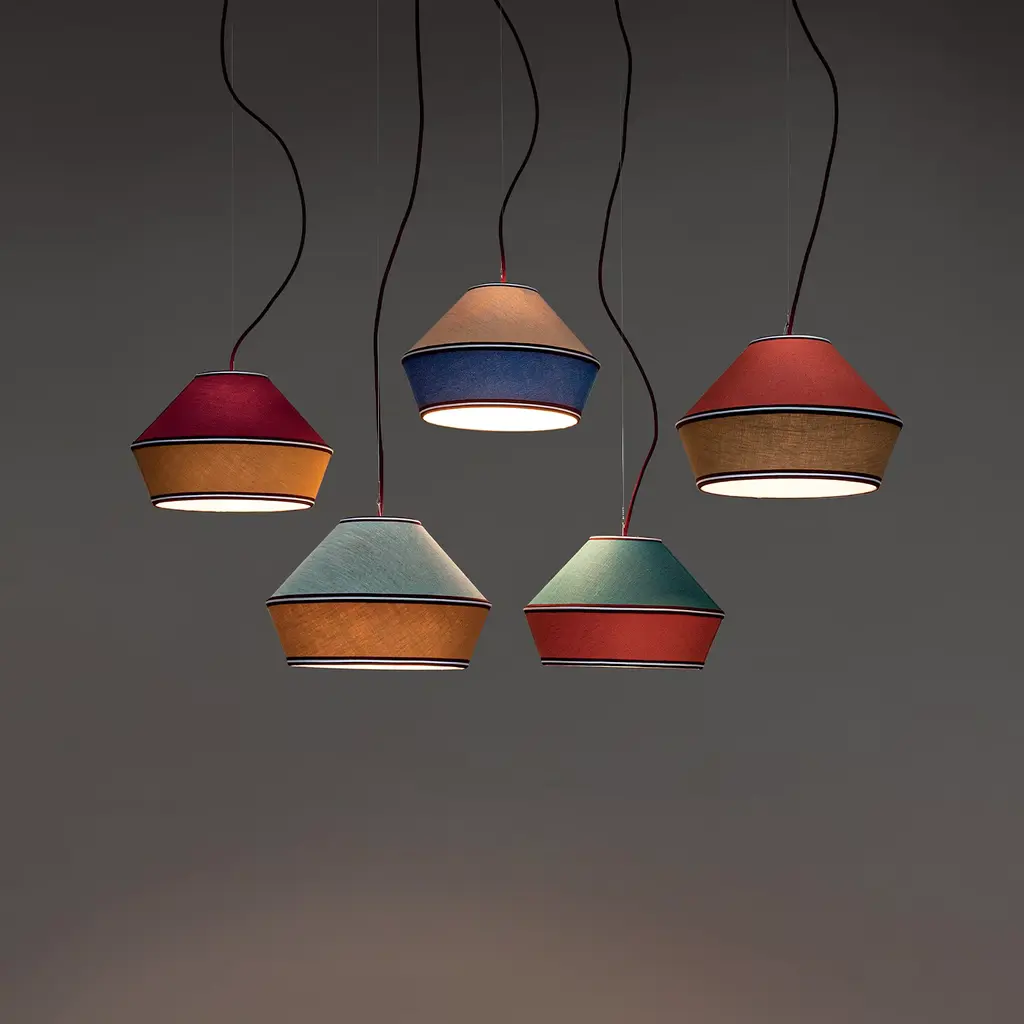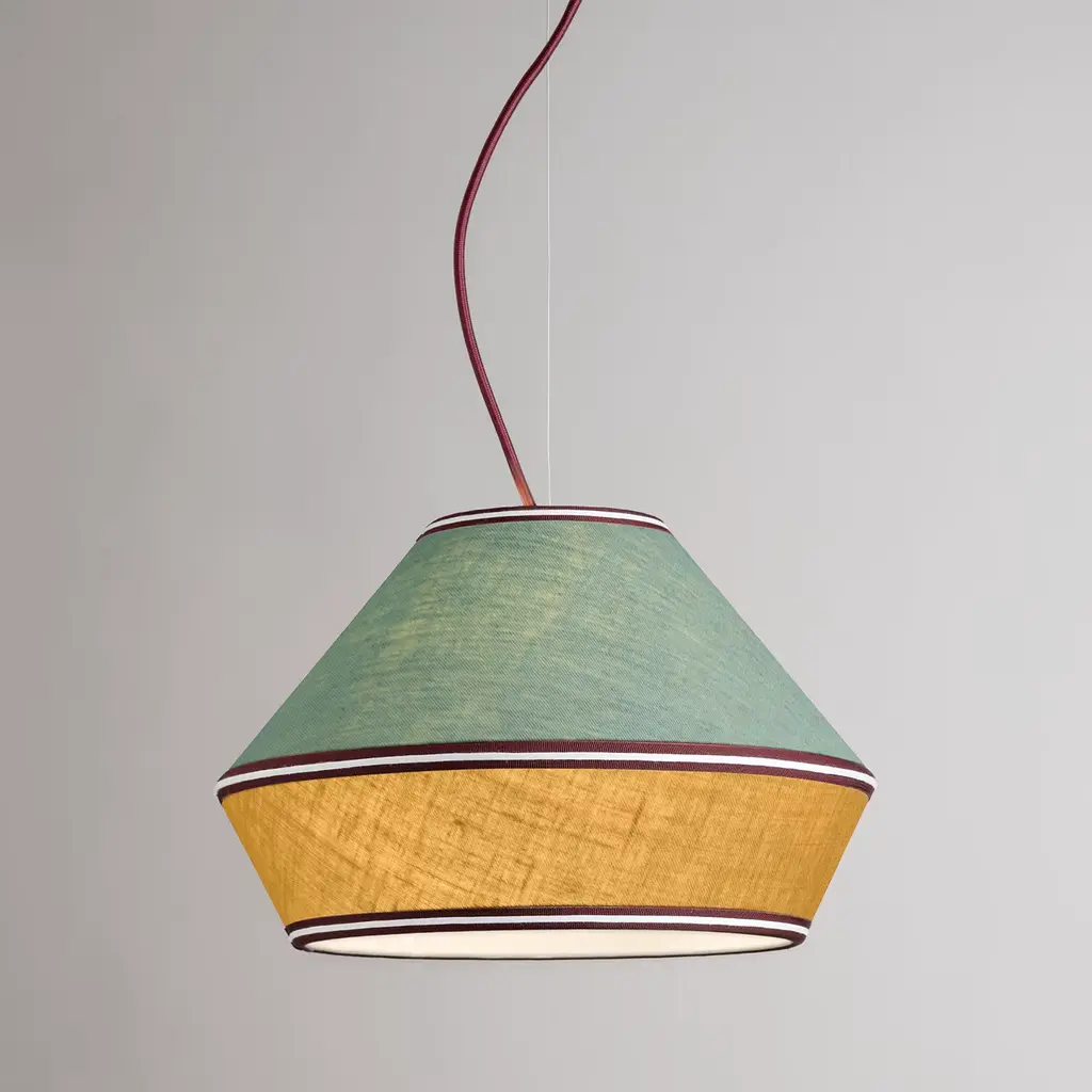 One of the most iconic and versatile pendant lamps by SERVOMUTO. The Meringa lamp is realized in pure linen with a burgundy fabric cable in white painted iron ceiling rose. Suitable for LED Bulbs, compatible with dimmable systems. The lamp is available also in a 35cm diameter, please ask Concierge for details.