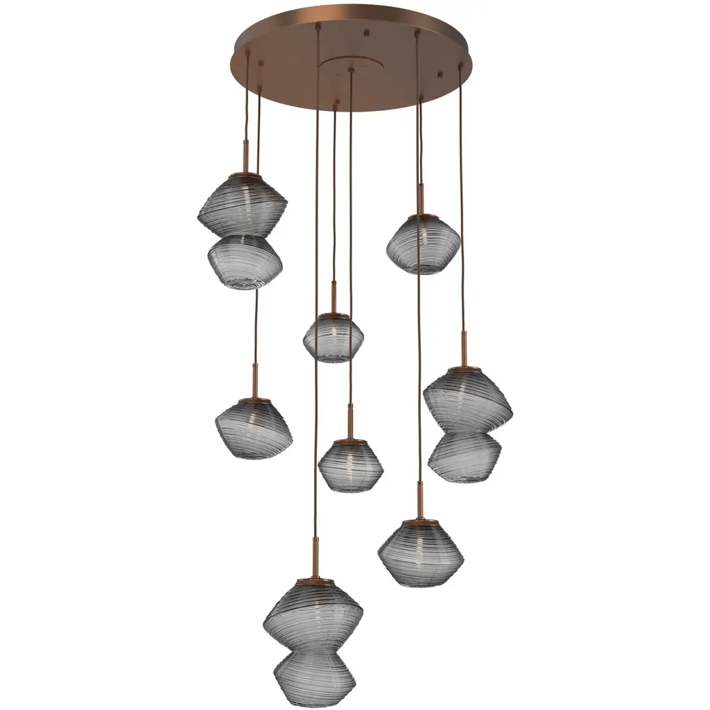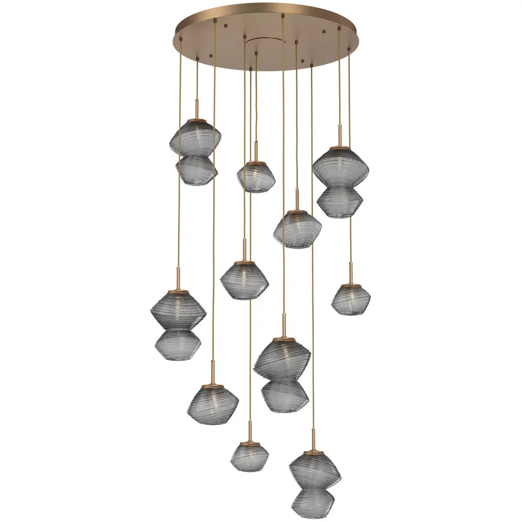 Mesa 11pc Multi - Pendant - Burnished Bronze - Smoke Blown Glass - Cloth Braided Cord - LED - 3000K