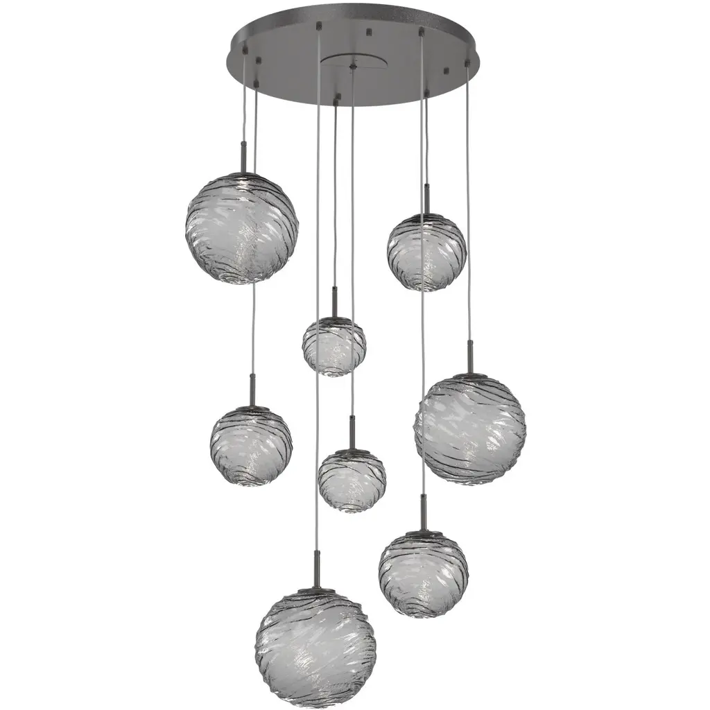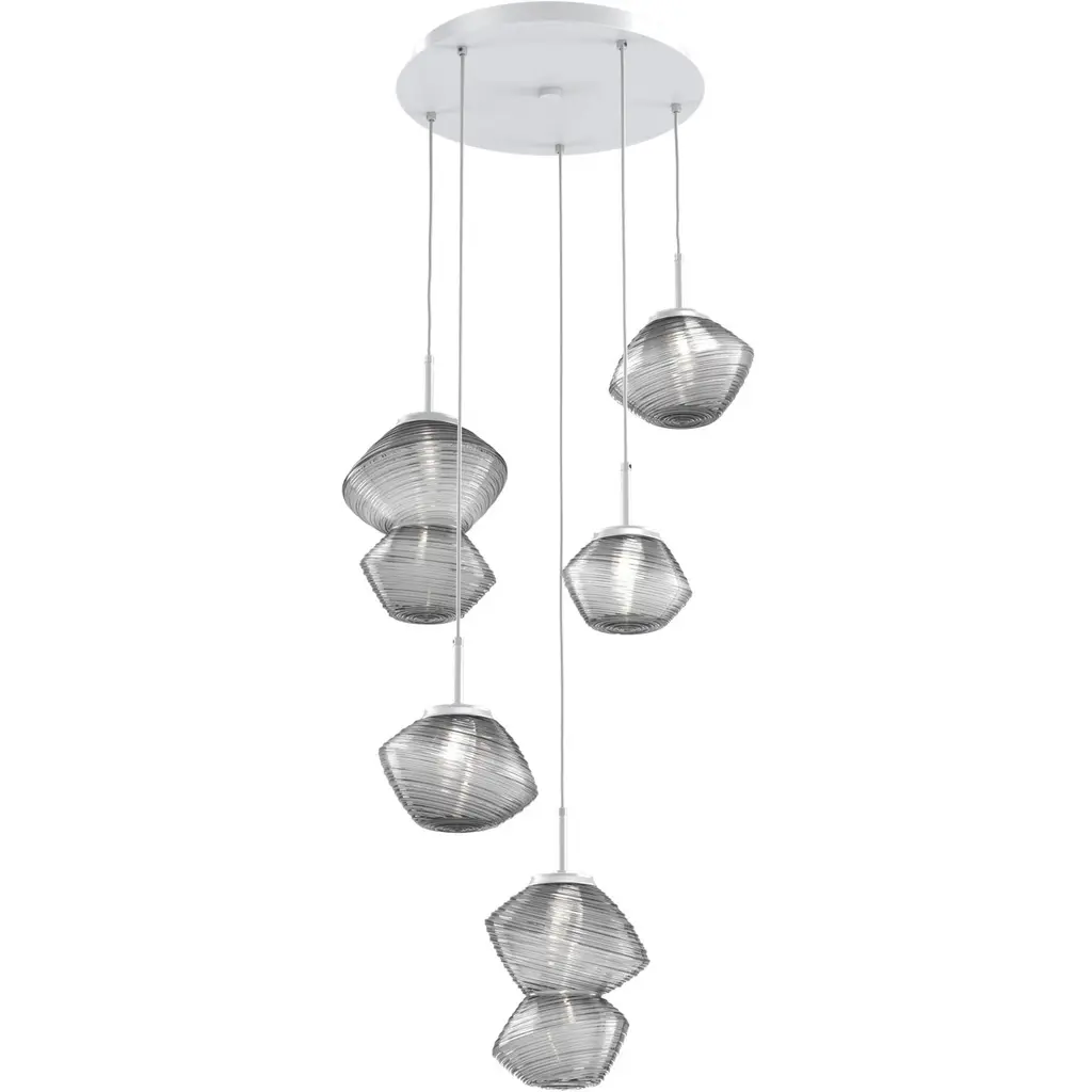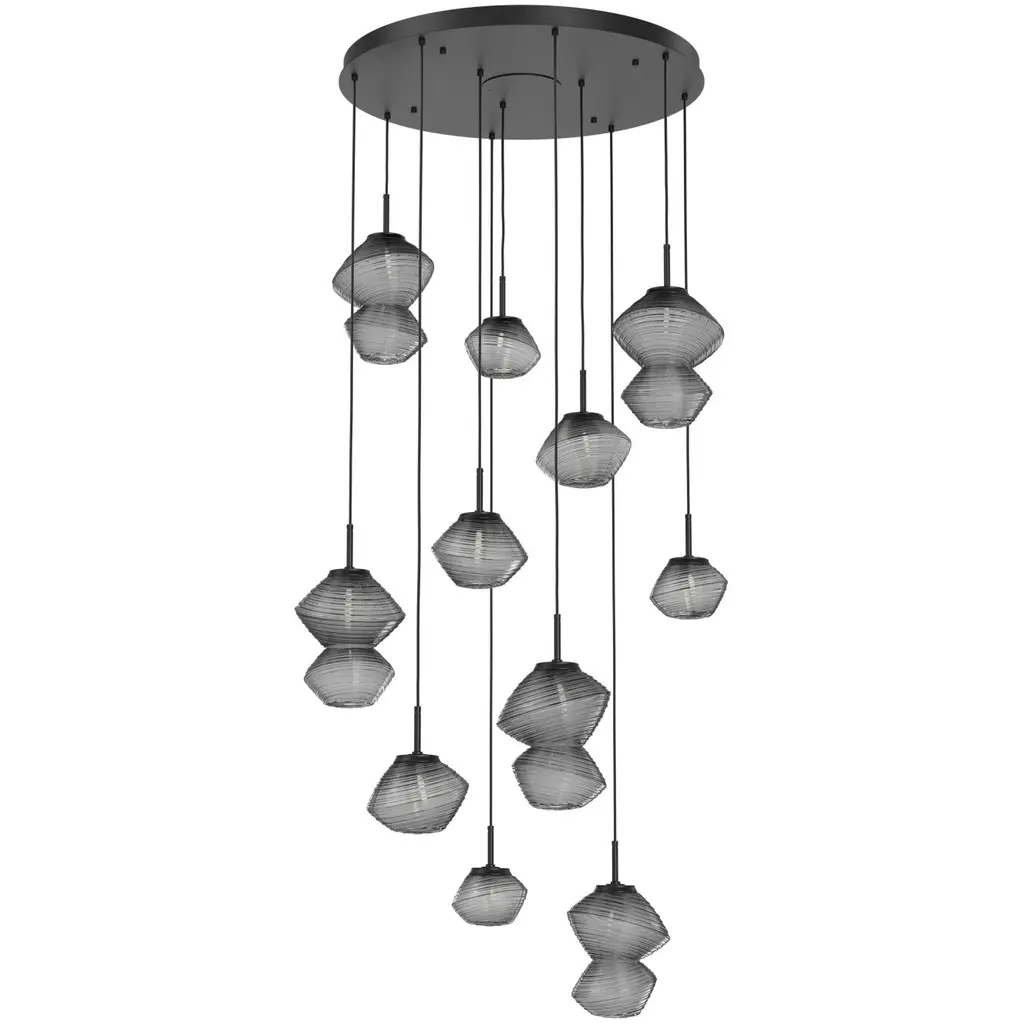 Mesa 11pc Multi - Pendant - Classic Silver - Smoke Blown Glass - Cloth Braided Cord - LED - 3000K