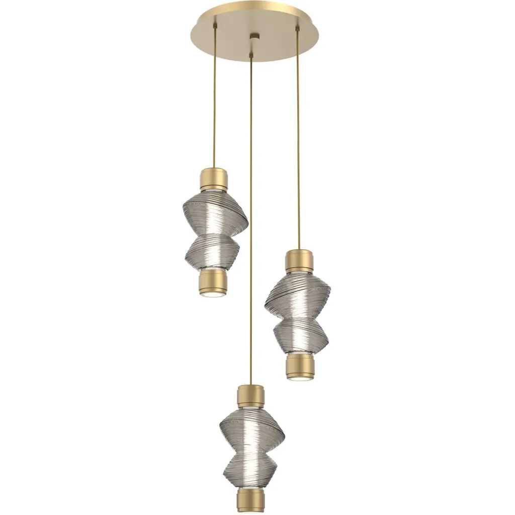 Mesa Led 17.4 Inch Gilded Brass Swag Multi-Pendant Ceiling Light In 3000k Led, Smoke