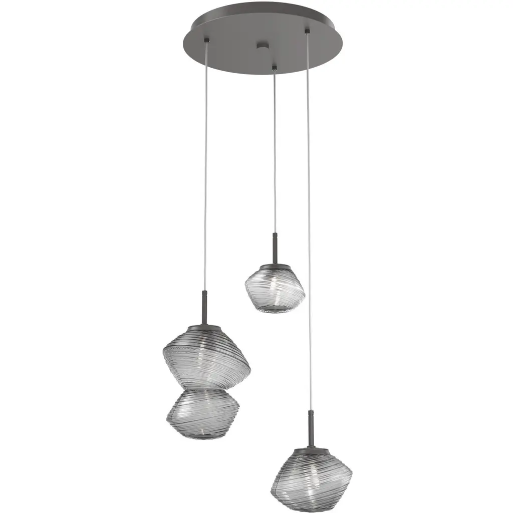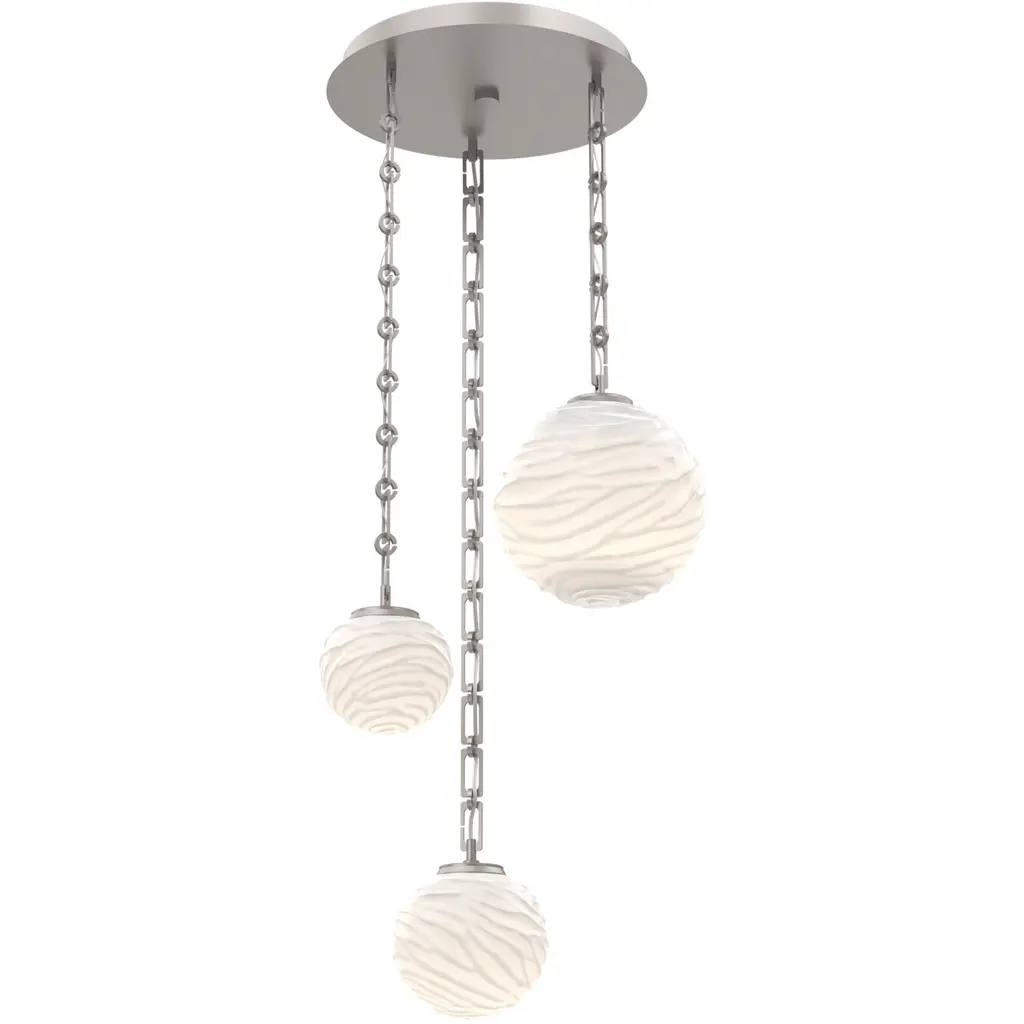 Beautifully striated diffusers in LED-illuminated and artisan blown crystal glass evoke the rugged beauty of iconic Southwest landscapes in the Mesa pendant chandelier. Each is handcrafted by Hammerton artisans from up to five pounds of molten glass and is illuminated with 93 CRI integrated LED. Suspension options include cloth-braided cord or handcrafted chain in three vintage-inspired styles.