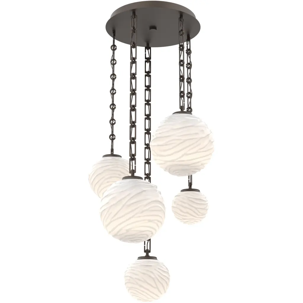 Beautifully striated diffusers in LED-illuminated and artisan blown crystal glass evoke the rugged beauty of iconic Southwest landscapes in the Mesa pendant chandelier. Each is handcrafted by Hammerton artisans from up to five pounds of molten glass and is illuminated with 93 CRI integrated LED. Suspension options include cloth-braided cord or handcrafted chain in three vintage-inspired styles.