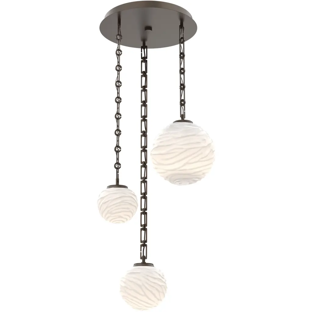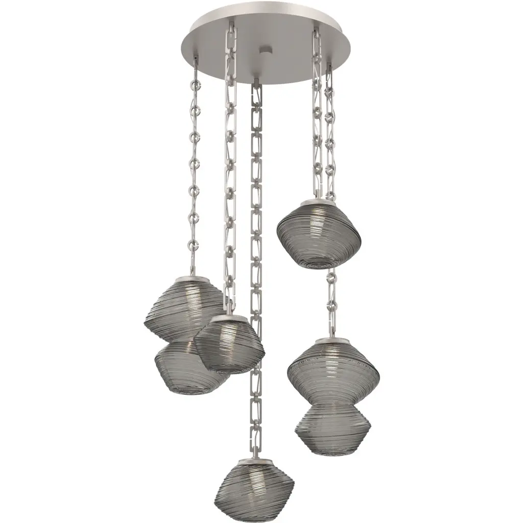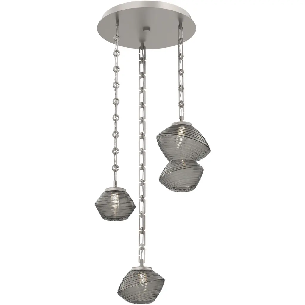 Beautifully striated diffusers in LED-illuminated and artisan blown crystal glass evoke the rugged beauty of iconic Southwest landscapes in the Mesa pendant chandelier. Each is handcrafted by Hammerton artisans from up to five pounds of molten glass and is illuminated with 93 CRI integrated LED. Suspension options include cloth-braided cord or handcrafted chain in three vintage-inspired styles.