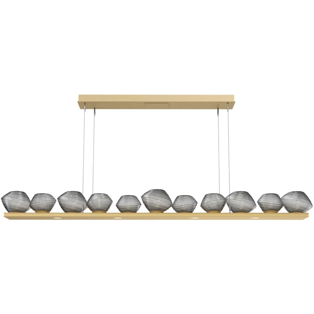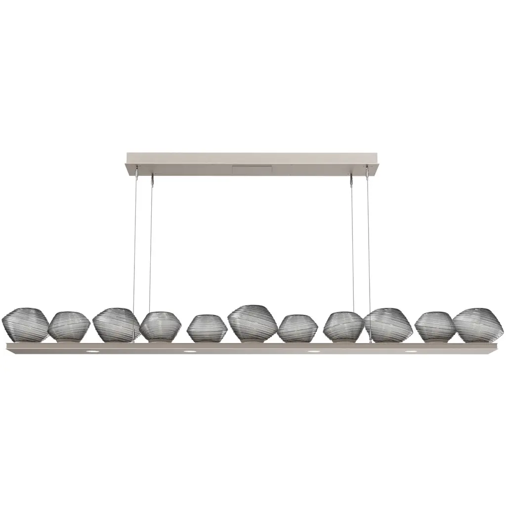 Mesa 59" Linear Suspension-Beige Silver-Smoke Blown Glass-Stainless Cable-LED 3000K