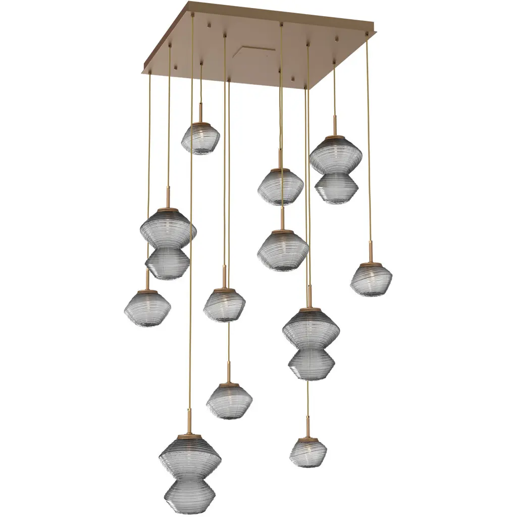 Mesa 12pc Multi - Pendant - Burnished Bronze - Smoke Blown Glass - Cloth Braided Cord - LED - 2700K