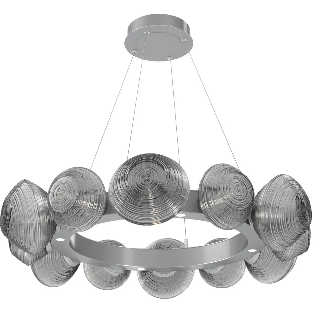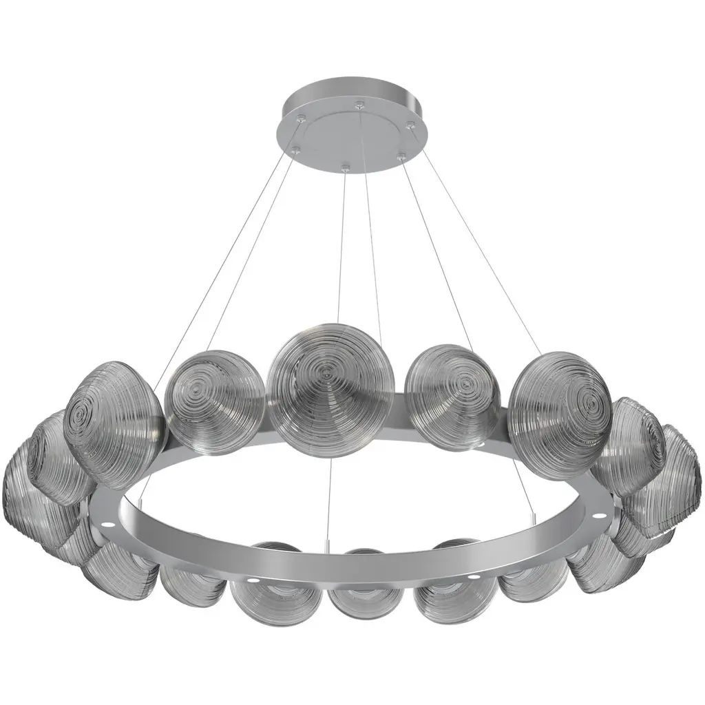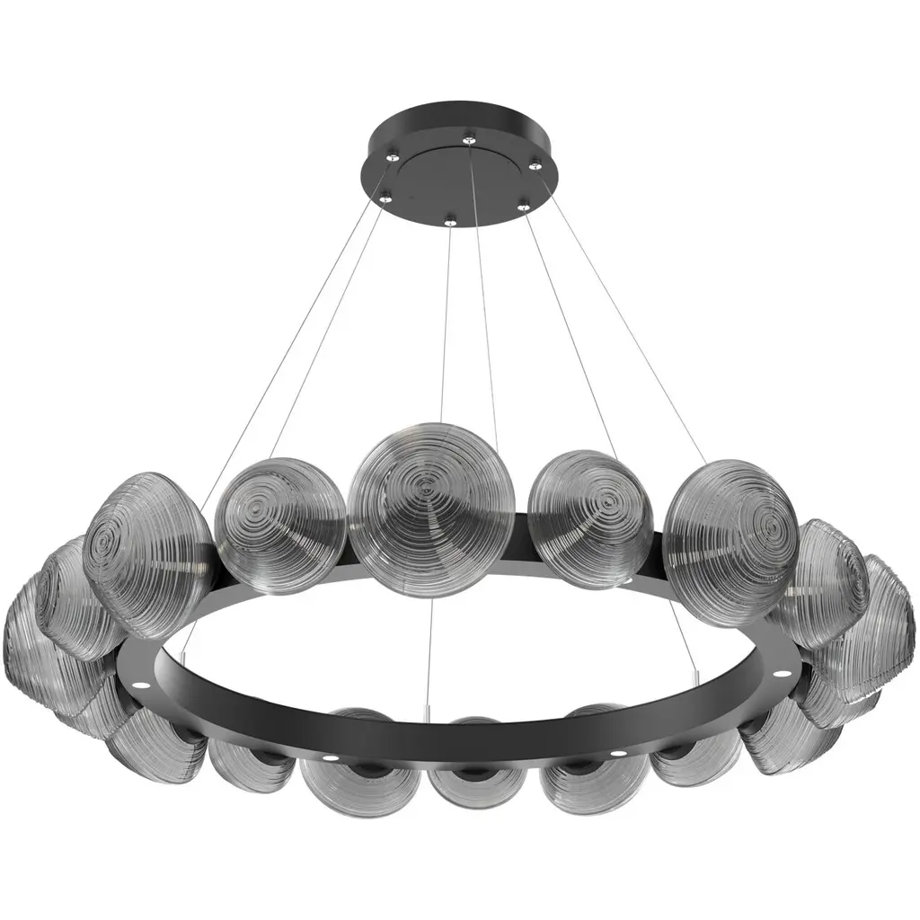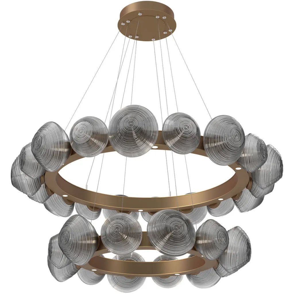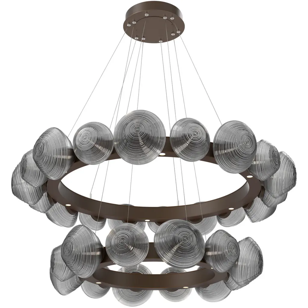 Mesa 36" Radial Ring - Burnished Bronze - Flat Bronze - Smoke Blown Glass - Stainless Cable - LED - 3000K