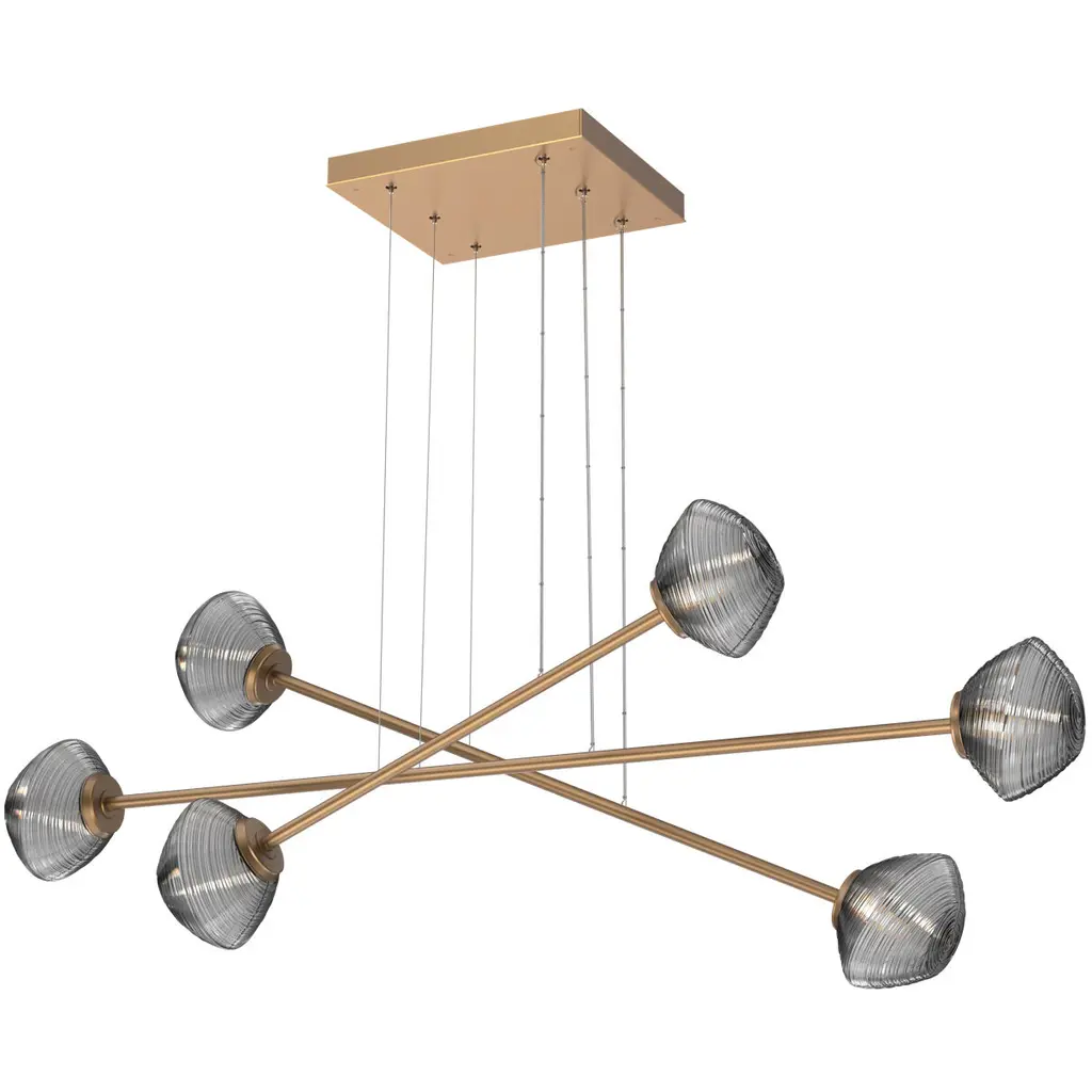 Mesa Led Gilded Brass Linear Multi-Pendant Ceiling Light In Smoke, 2700k Led, Triple Moda