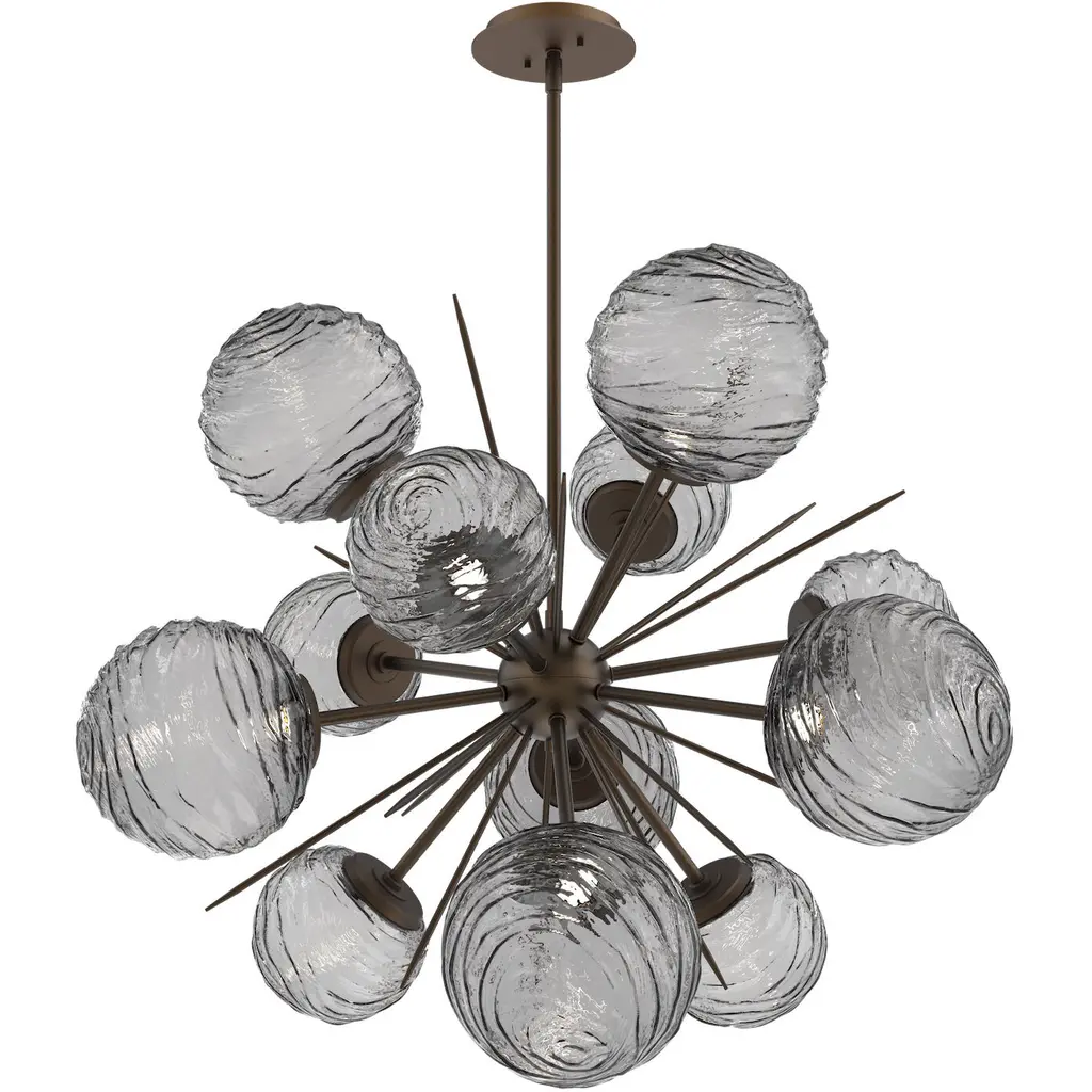Mesa Oval Starburst - Burnished Bronze - Graphite - Smoke Blown Glass - Threaded Rod (24",12" (2x),6",3") - LED - 2700K