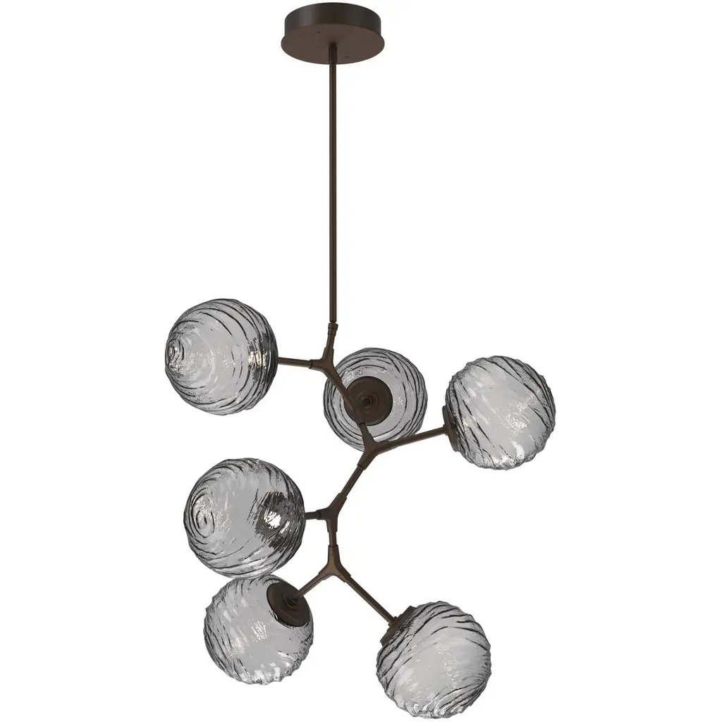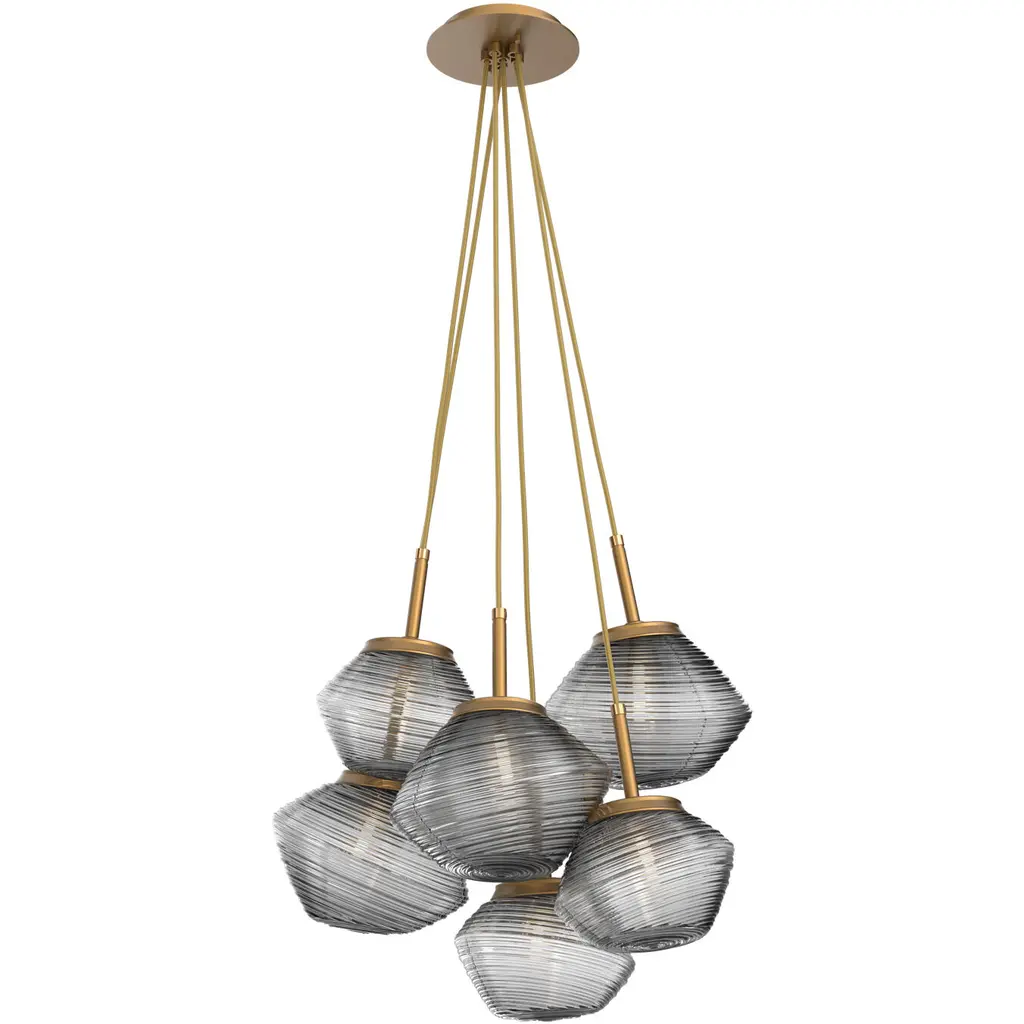 Mesa 6pc Cluster - Burnished Bronze - Graphite - Smoke Blown Glass - Cloth Braided Cord - LED - 3000K