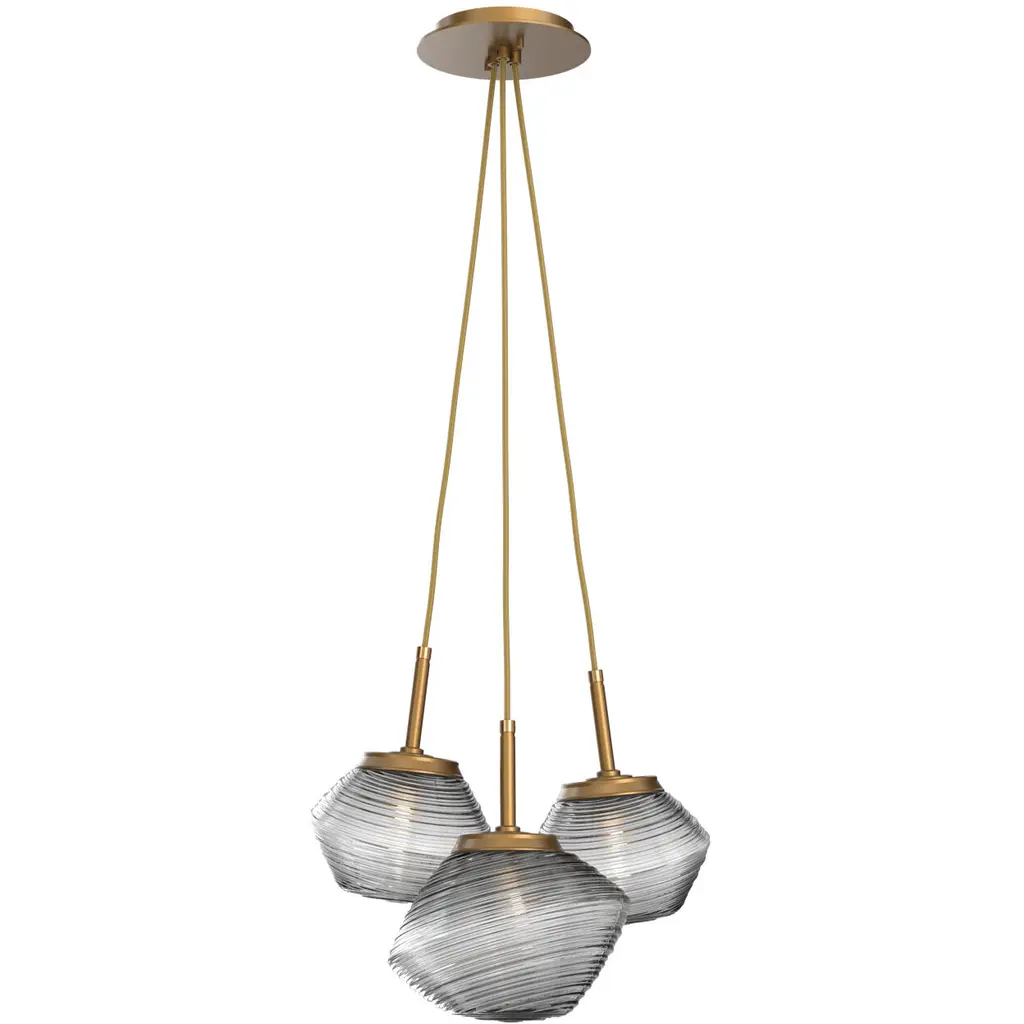 Mesa 3pc Cluster - Burnished Bronze - Graphite - Smoke Blown Glass - Cloth Braided Cord - LED - 3000K