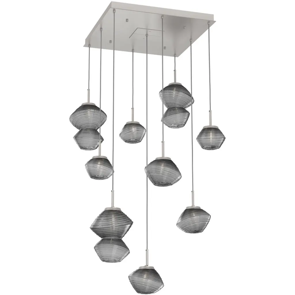 Mesa 12pc Multi - Pendant - Graphite - Smoke Blown Glass - Cloth Braided Cord - LED - 2700K