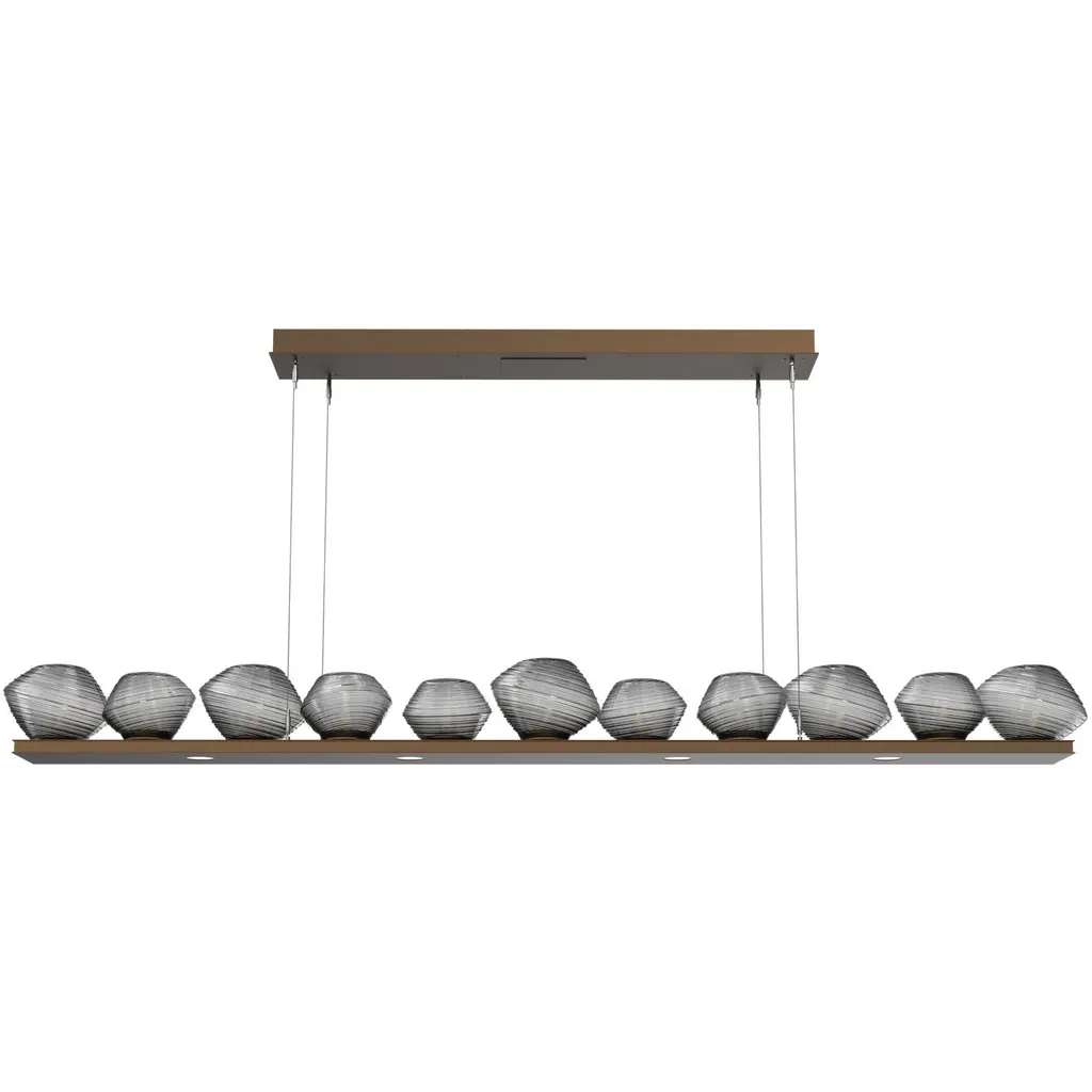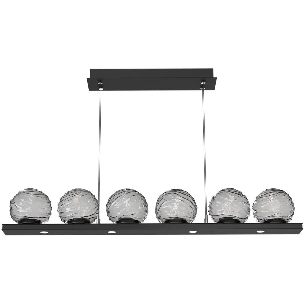 Mesa 59" Linear Suspension-Matte Black-Smoke Blown Glass-Stainless Cable-LED 3000K