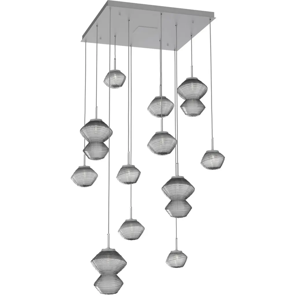 Mesa 12pc Multi - Pendant - Matte Black - Smoke Blown Glass - Cloth Braided Cord - LED - 2700K