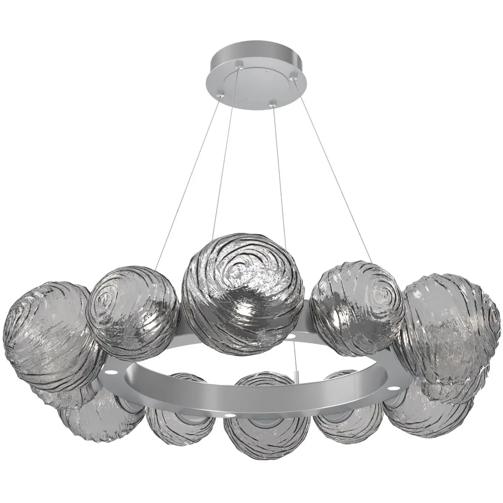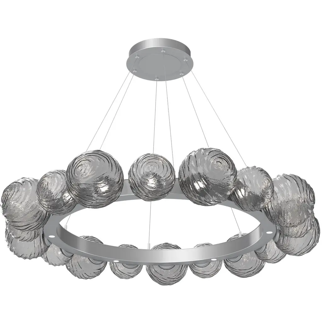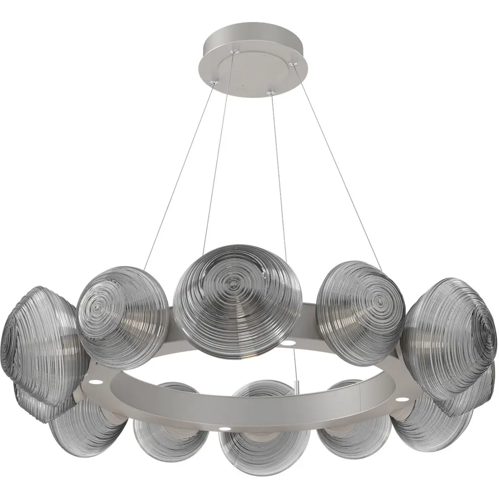 Mesa Two Tier Radial Ring - Burnished Bronze - Matte Black - Smoke Blown Glass - Stainless Cable - LED - 2700K