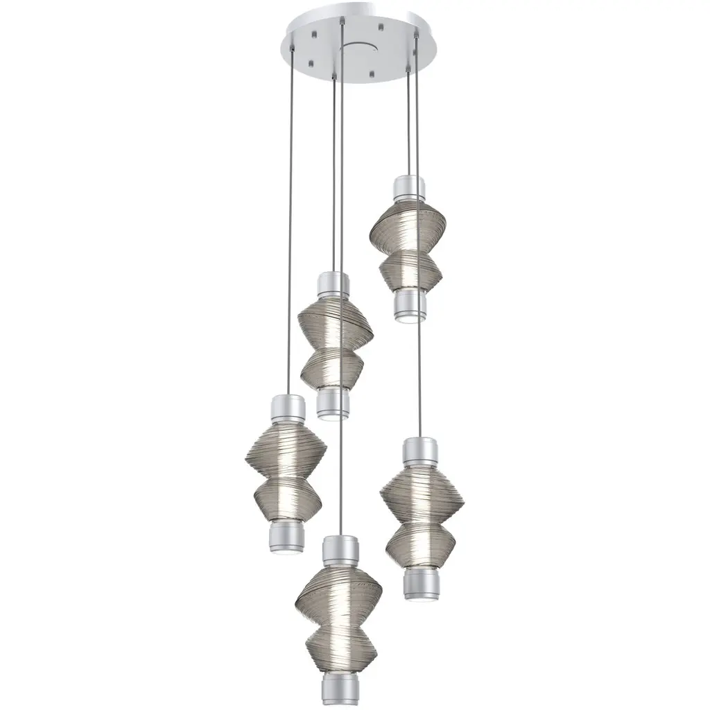 Mandrel Round 5pc Multi-Pendant - Mesa-Flat Bronze-Smoke Blown Glass-Cloth Braided Cord-LED - 3000K