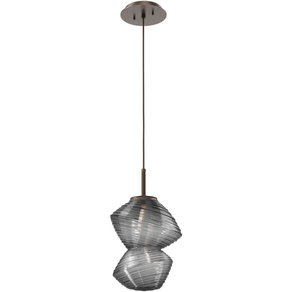Mandrel Single Pendant - Mesa-Novel Brass-Smoke Blown Glass-Cloth Braided Cord-LED - 3000K