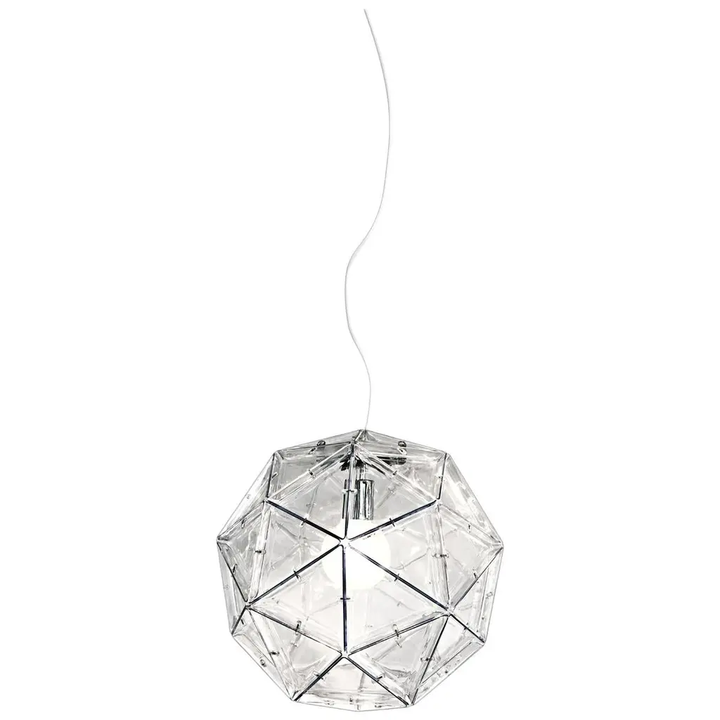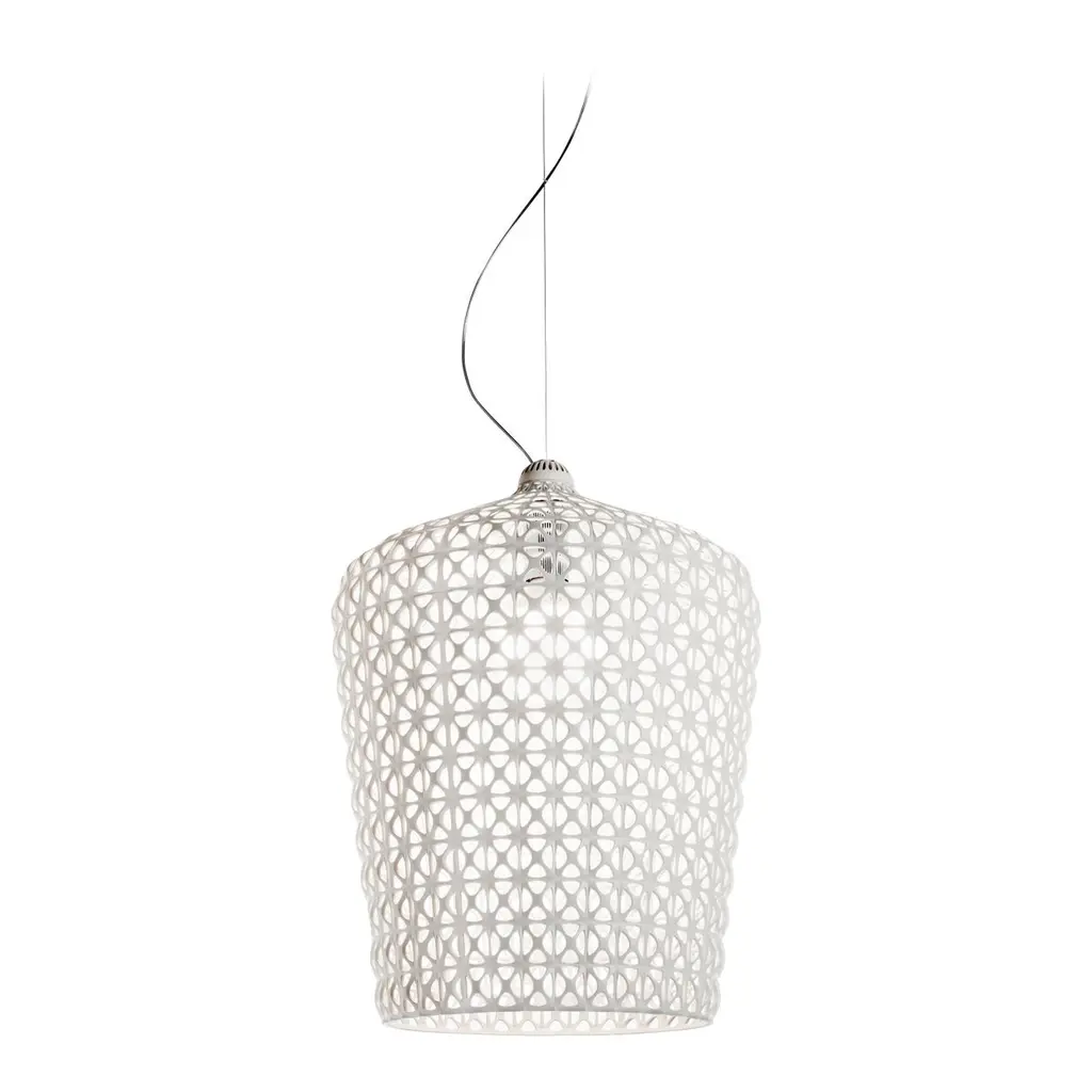 Brighten up your interiors with the graceful construction of the Mesh Pendant by Forestier. An open wireframe construction designed by Arik Levy; it evokes the traditional shape of rice paper lanterns by setting a softly angled shape made from a metal wireframe around lamping gentled by a PVC diffuser. The wires making up the frame are more densely packed around the top and widely set on the bottom, creating a greater dispersion of ambient light below the fixture.