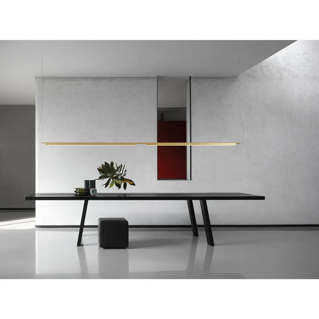 The Metal Bar Pendant Lamp Compendium by Luceplan exudes minimalist elegance that casts generous light across surfaces. Its versatile design allows for either direct downward illumination or indirect upward lighting, easily adjusted by rotating the reflector during installation. Compatible with wall dimmers, this lamp offers customized brightness to suit any ambiance. Its a sophisticated addition to both residential and commercial spaces, providing high-quality illumination while enhancing the room's aesthetic.