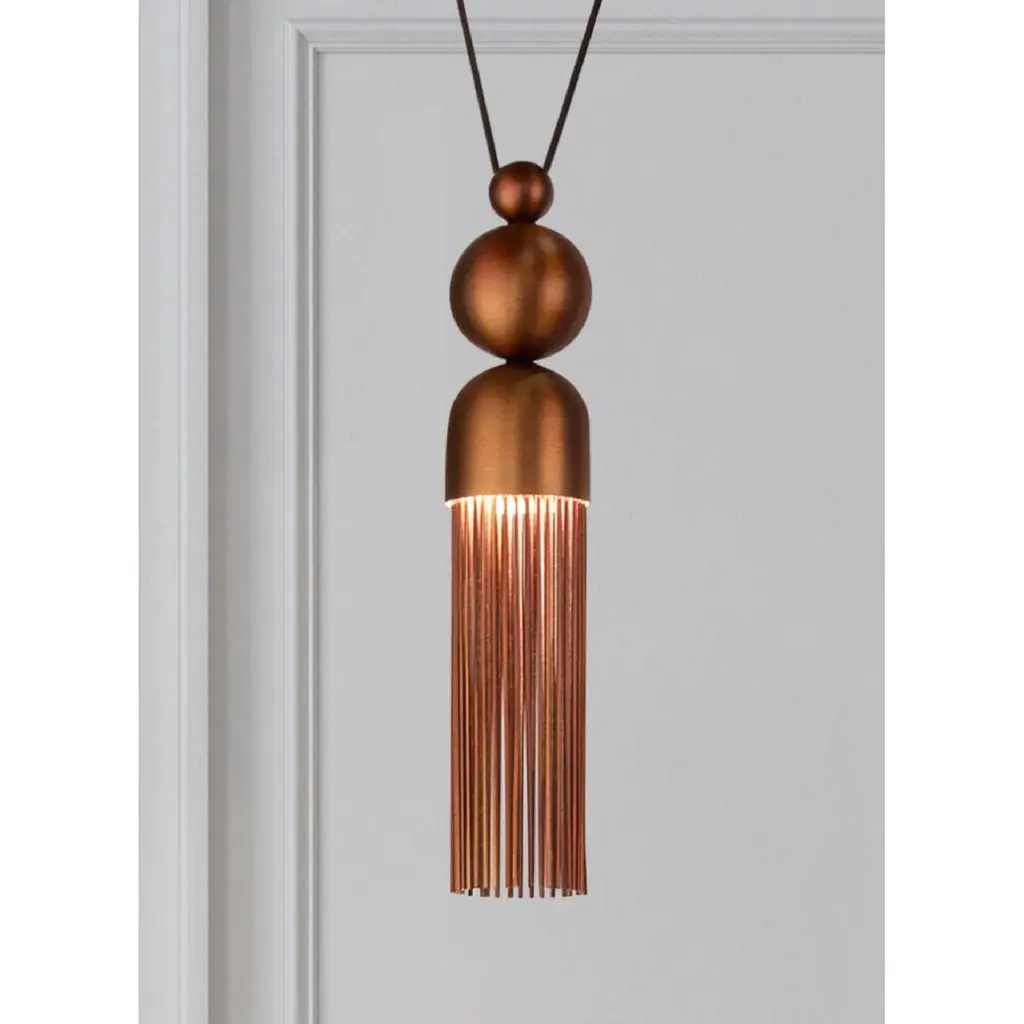 Experience elegance and luxury with Metal Rods Pendant Lamp S. Its painted metal structure and glass diffusers exude sophistication. Inspired by Venetian "nappine", each tassel shape has been stylized for a tasteful and exclusive touch. Embrace the company's local ties with this timeless collection.