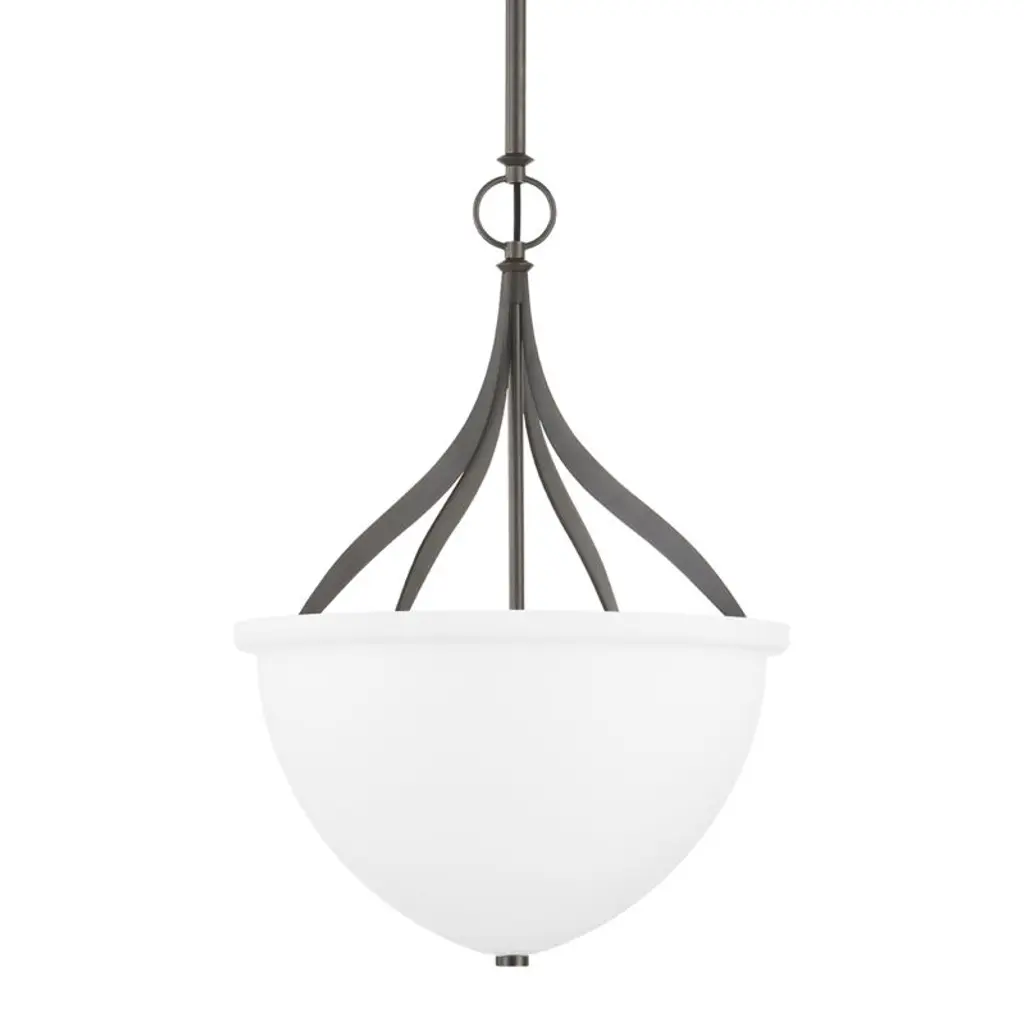 The Metcalf three light indoor pendant in autumn bronze is an ENERGY STAR½ qualified lighting fixture that uses LED bulbs to save you both time and money. The soft curves give the transitional Metcalf lighting collection by its clean, subtle look. The modern silhouette of the Satin Etched glass shades reinforces the easy and casual lines of this design. Equally at home in a contemporary, urban setting or a transitional decor in the suburbs, the full lighting collection is offered in Autumn Bronze and Brushed Nickel finishes and is comprised of nine-, five- and three-light chandeliers; one- and three-light pendants, mini pendant, two-light semi-flush mount; and one-, two-, three- and four-light bath fixtures. Incandescent and ENERGY STAR-qualified LED lamping are available; all fixtures are California Title 24 compliant.