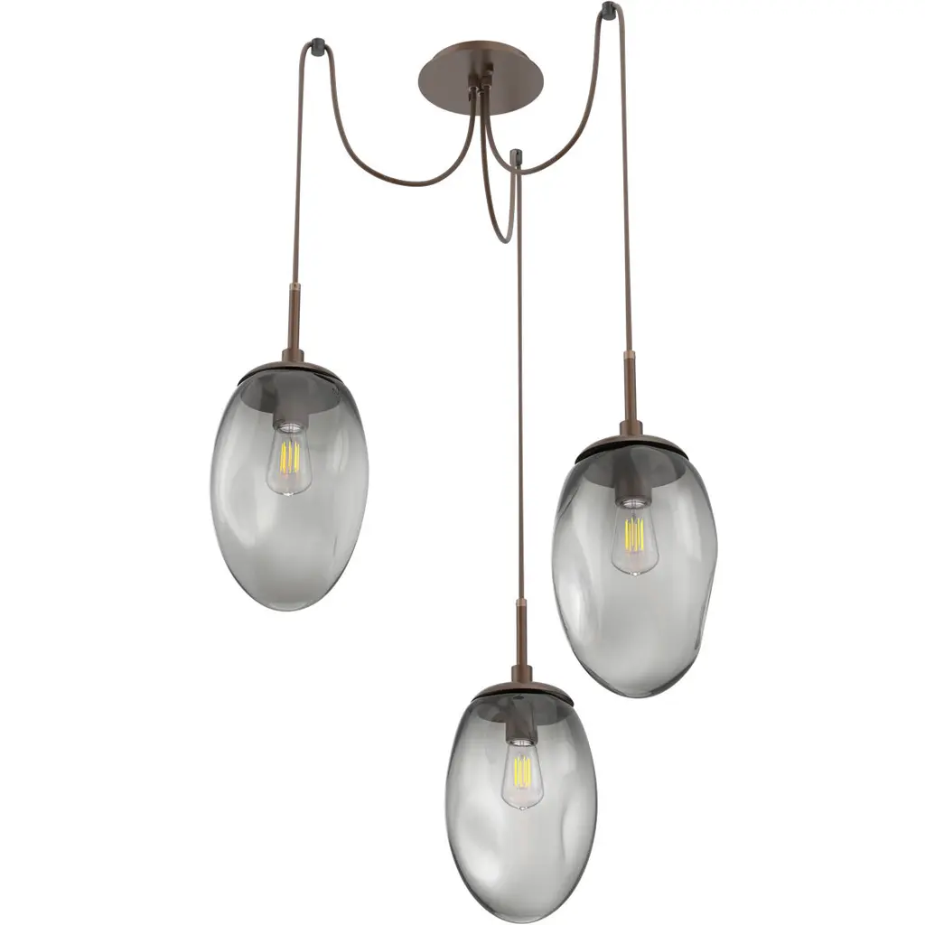 Meteo 3 Light 17 Inch Gilded Brass Swag Multi-Pendant Ceiling Light In Smoke