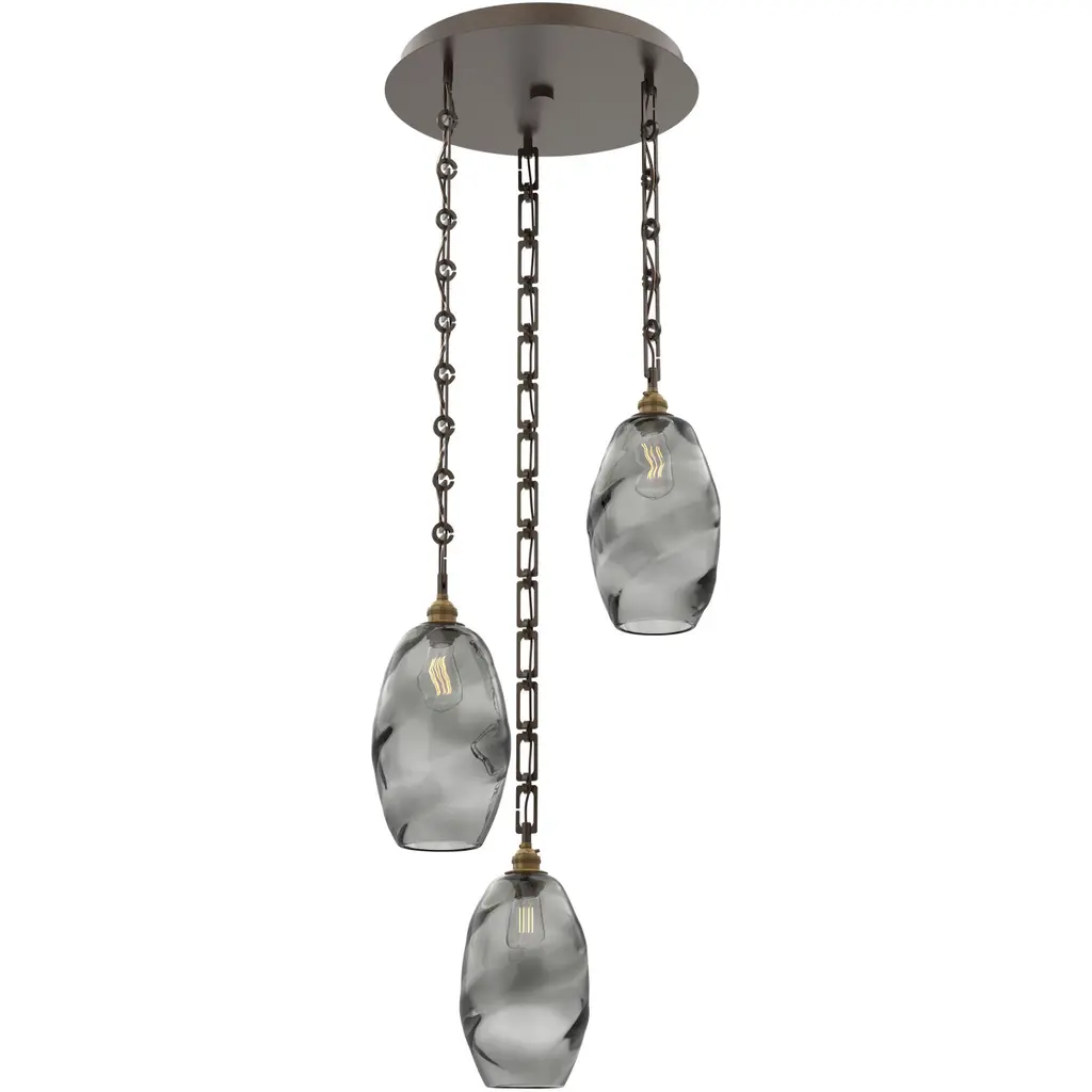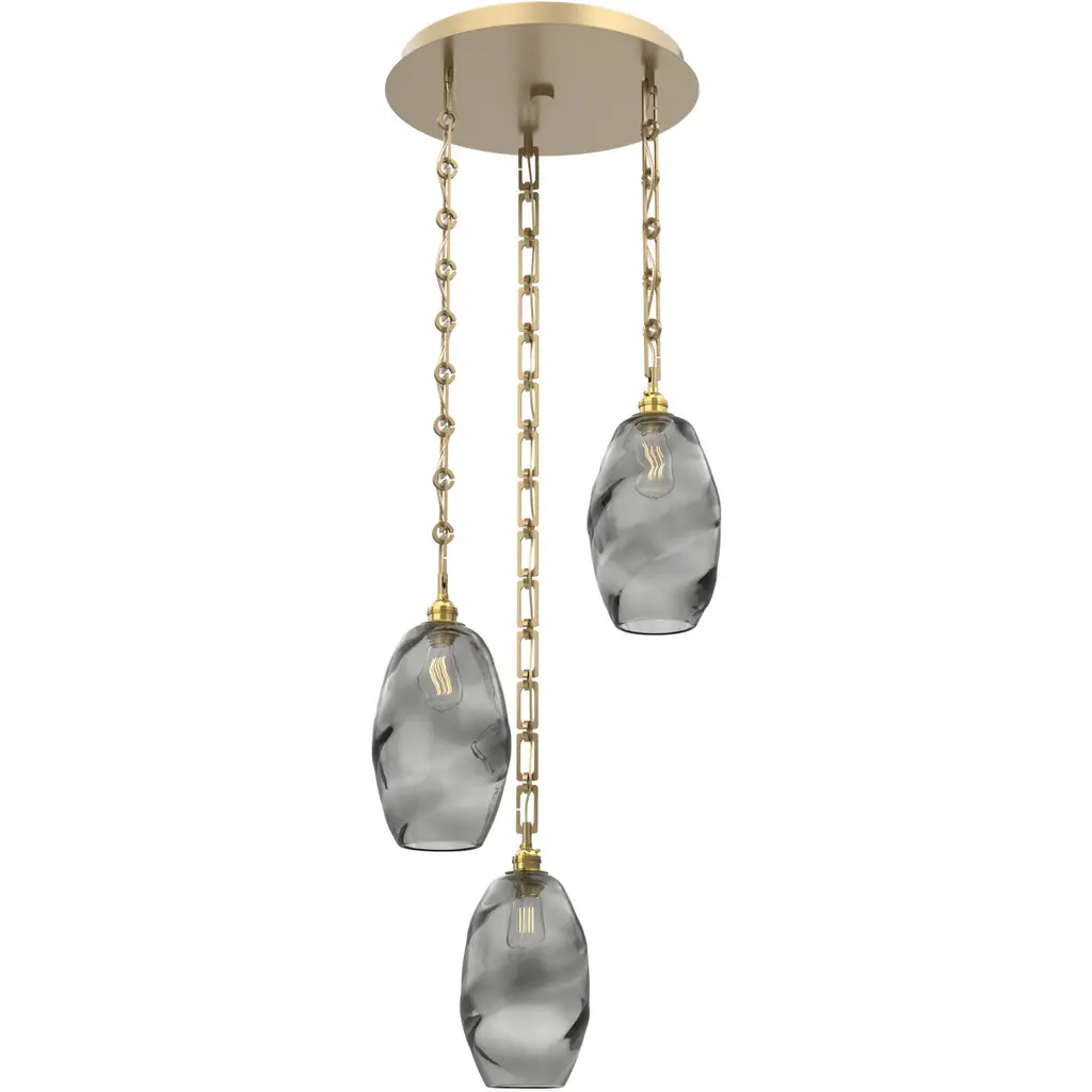 Meteo 3 Light 20 Inch Gilded Brass Multi-Pendant Ceiling Light In Smoke, Rectangular Chain