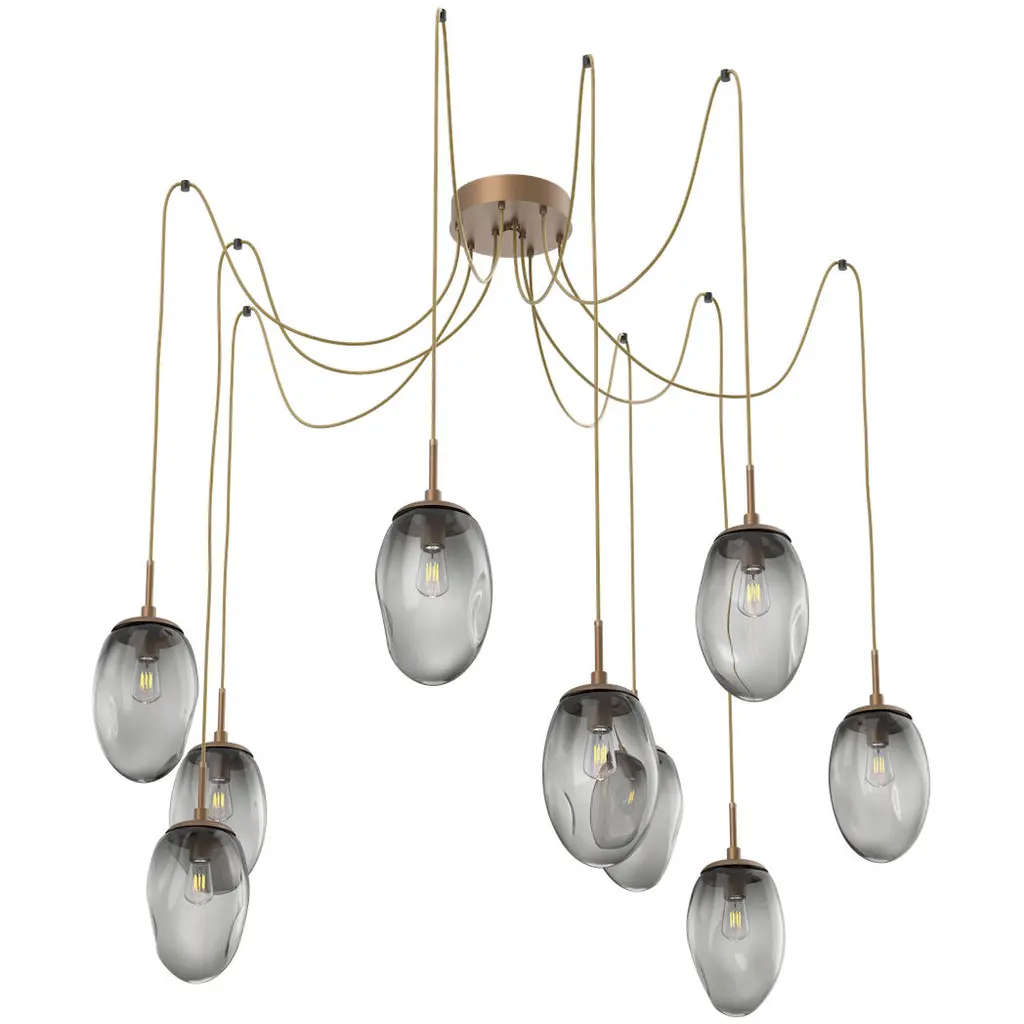 Meteo 9 Light 17 Inch Metallic Beige Silver Swag Multi-Pendant Ceiling Light In Smoke