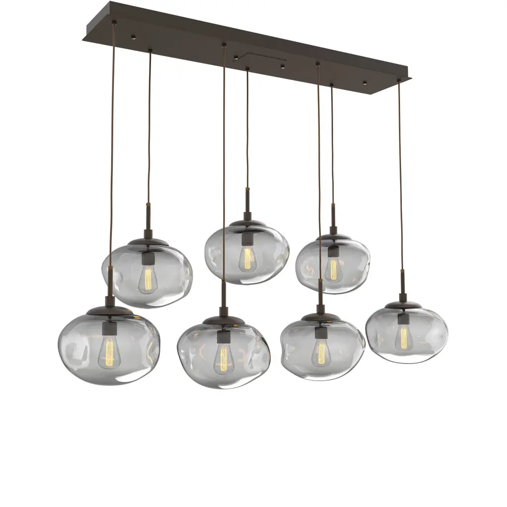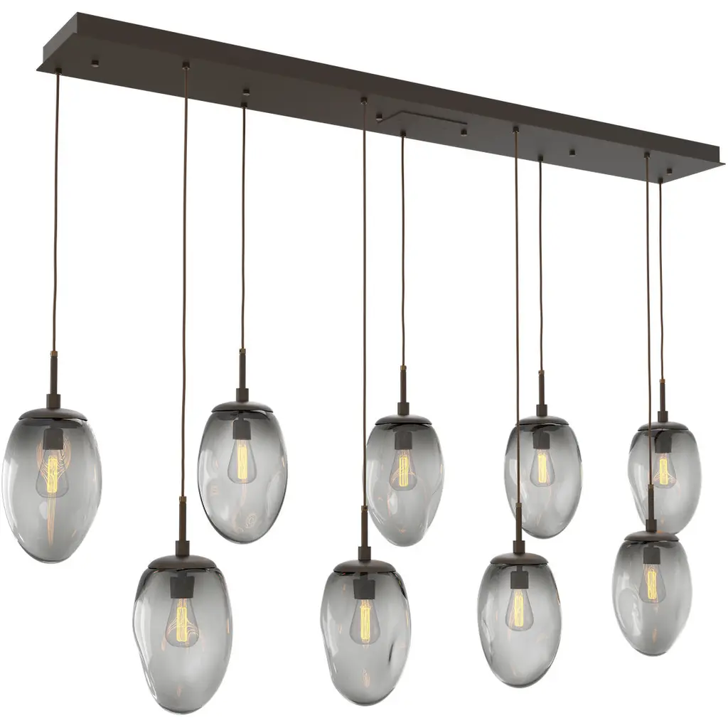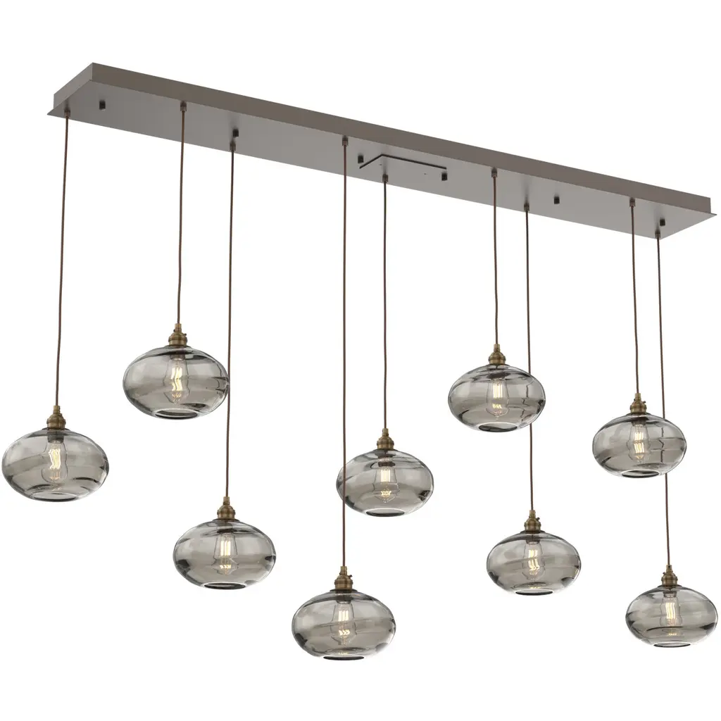 Meteo Linear Multi-Pendant-9PC-Incandescent-Burnished Bronze-Smoke Blown Glass-Cloth Braided Cord-E26