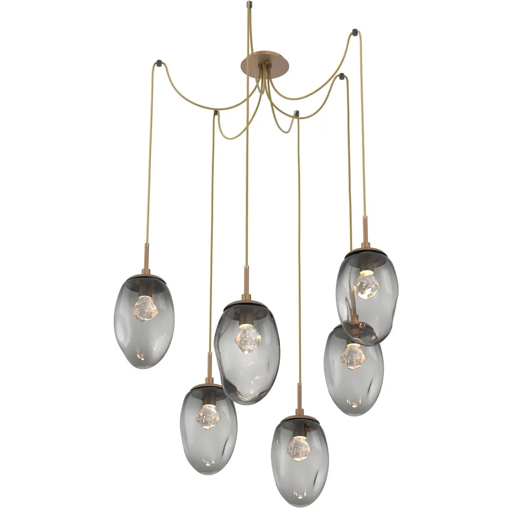 Meteo Led 17 Inch Metallic Beige Silver Swag Multi-Pendant Ceiling Light In 2700k Led, Zircon Inner - Smoke Outer